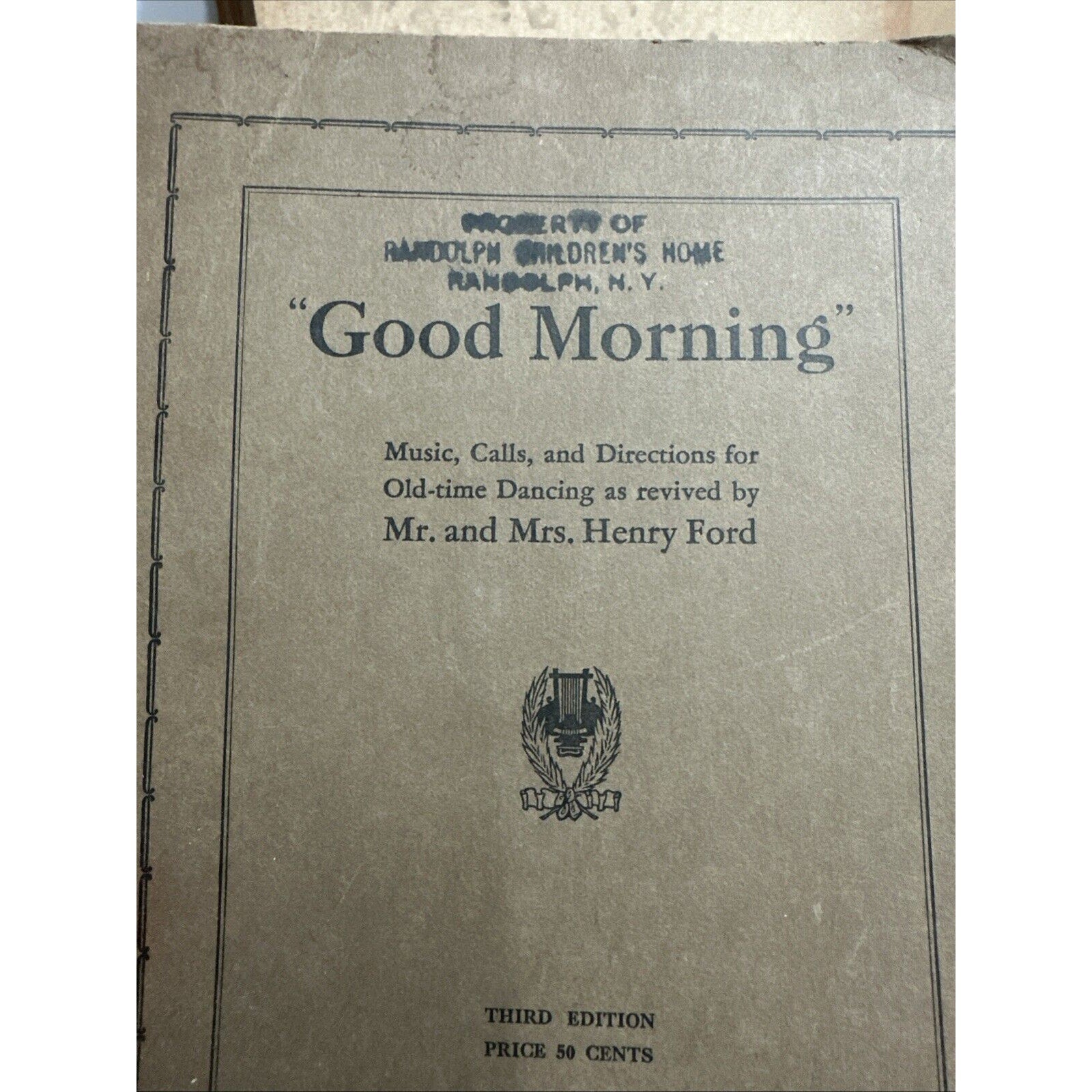 The product is a vintage book titled "Good Morning" by Mr. & Mrs. Henry Ford, published in 1941. It is a nonfiction narrative in English, providing music calls and directions for dancing. The book is not personalized, inscribed, or marked with Ex Libris, making it a unique piece from the 1940s era in the United States.
