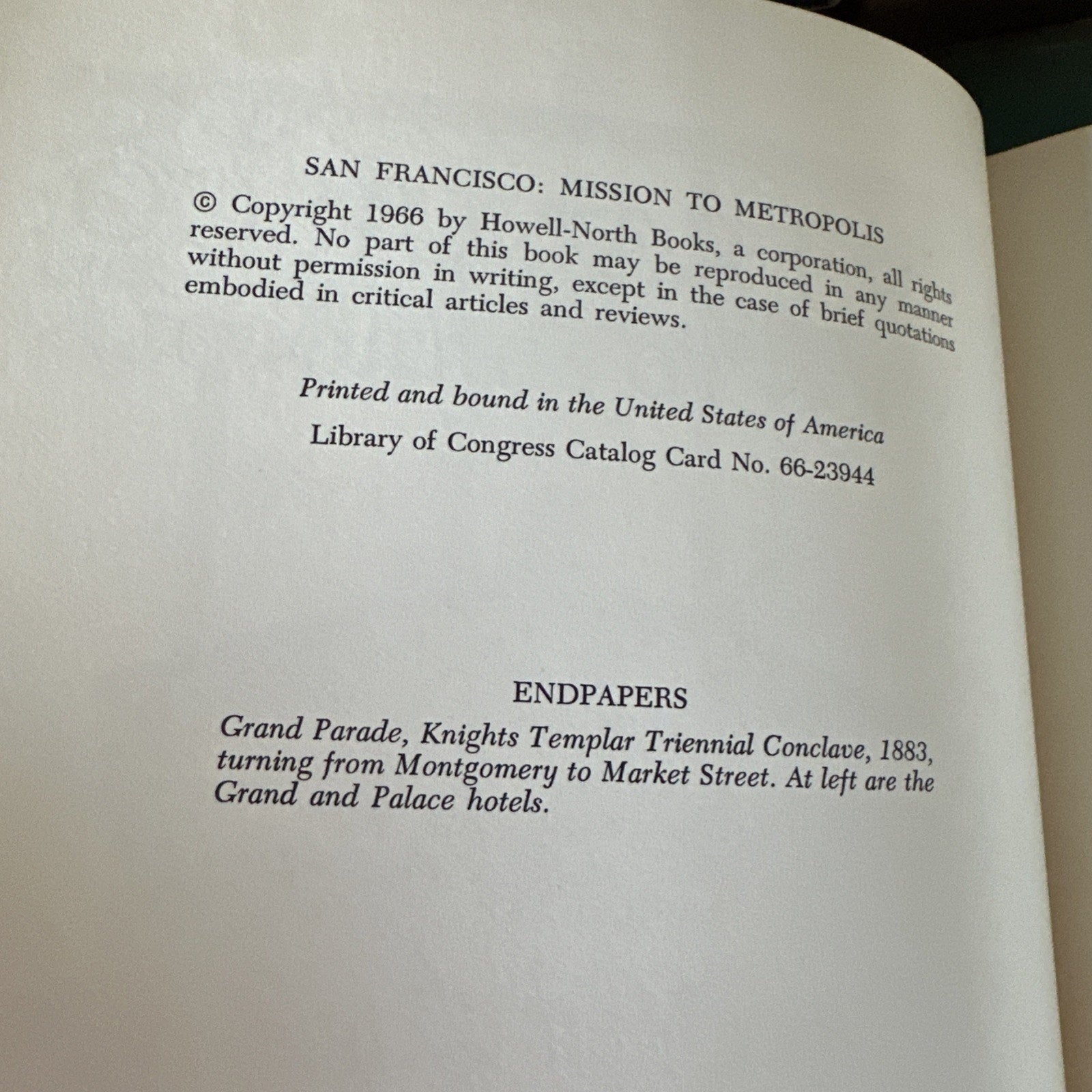 Explore the vibrant history of San Francisco with "Mission to Metropolis" by Oscar Lewis. Published in 1966 by Howell-North Books, this hardcover edition offers a fascinating glimpse into the city's past through the lens of exploration and travel. As a first edition complete with its original dust jacket, this book is a treasure for collectors and history aficionados alike.