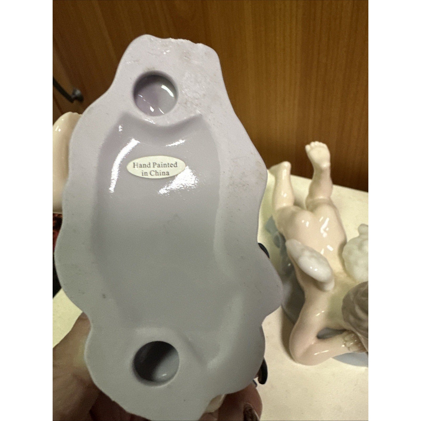 The 2003 Grandeur Noel 2 Pc. Porcelain Angels are beautifully crafted figurines depicting cherub angels. Made from fine porcelain and manufactured in 2003 in China, these figures come in a box packaging. The brand's reputation for quality craftsmanship is evident in these elegant and delicate figurines, making them a perfect addition to any collection or as decorative pieces in a home or space.