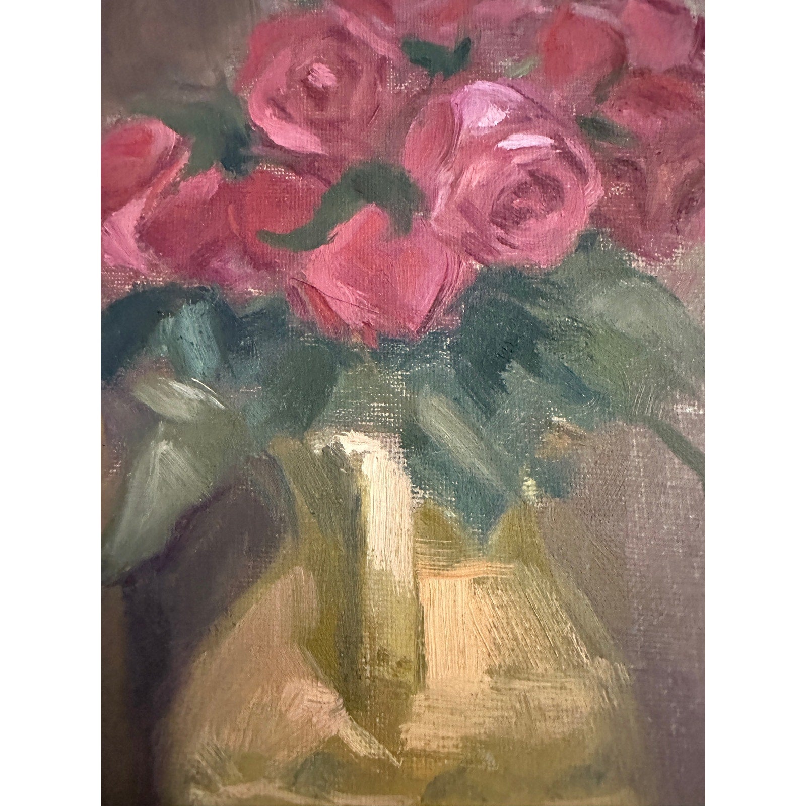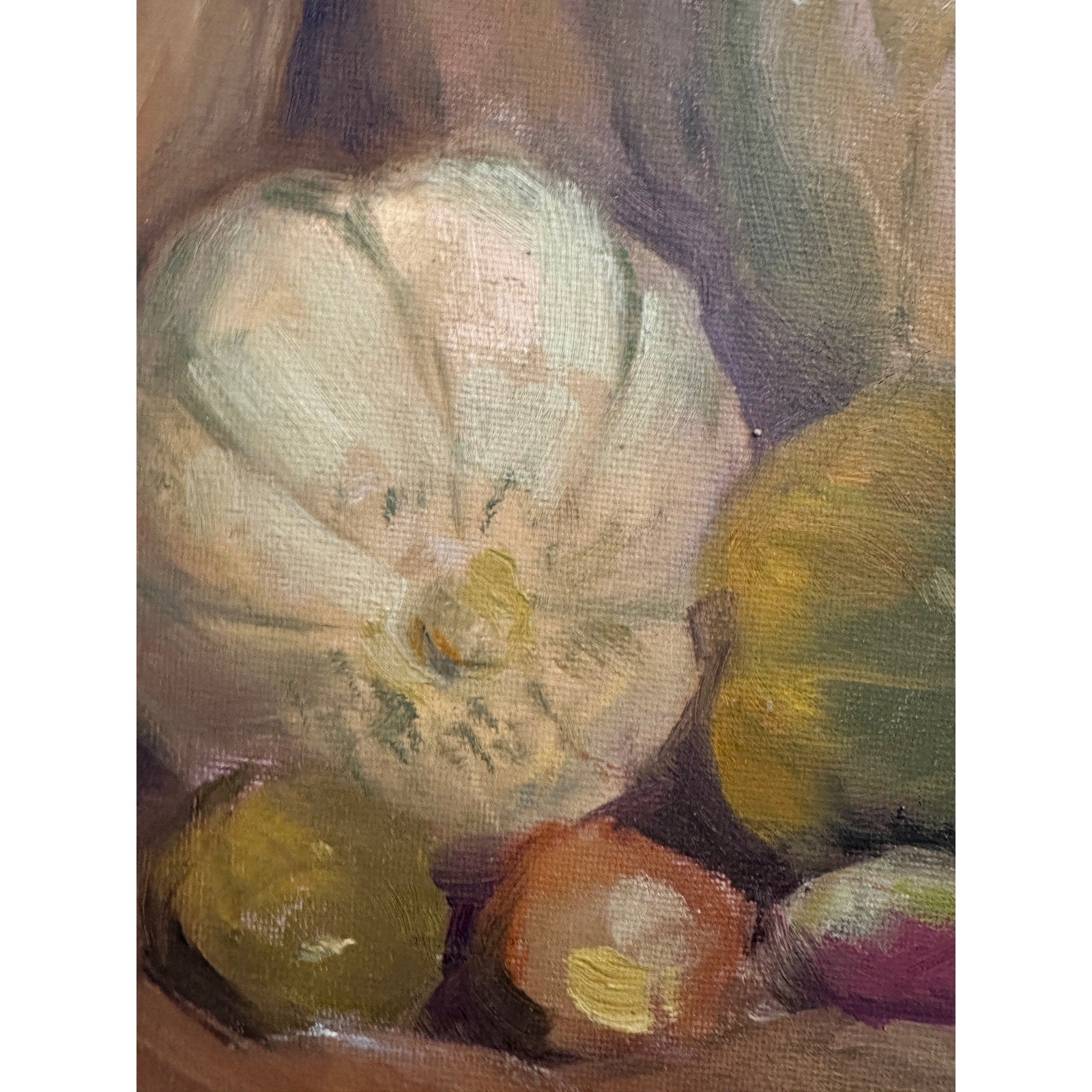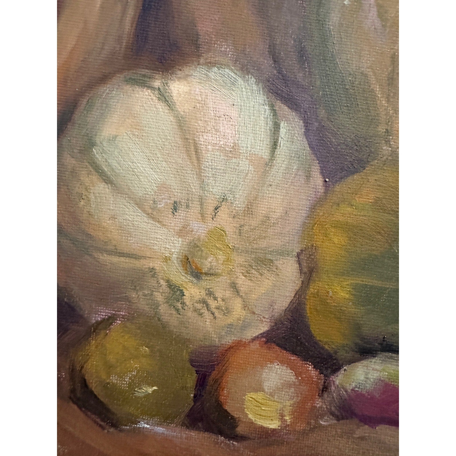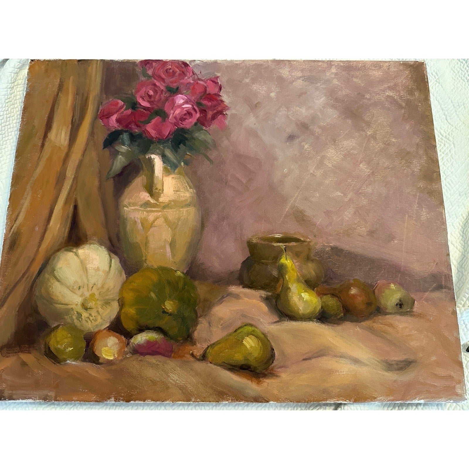 Hand painted acrylic still life, flowers, and fruits on canvas 20 x 16 unsigned not framed