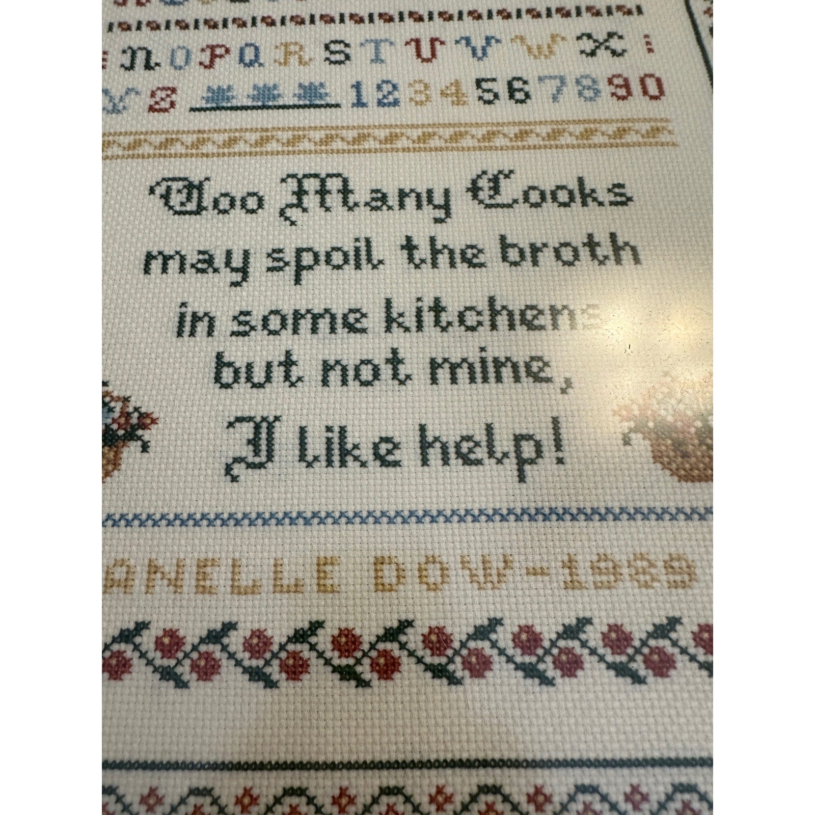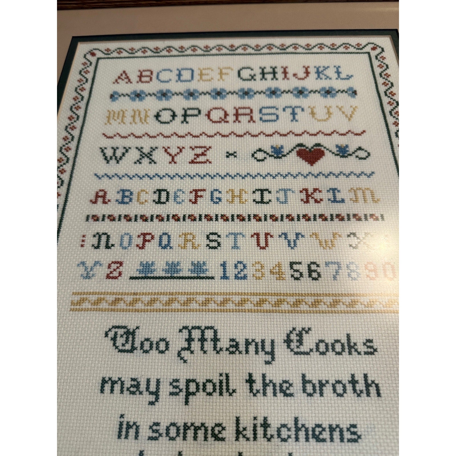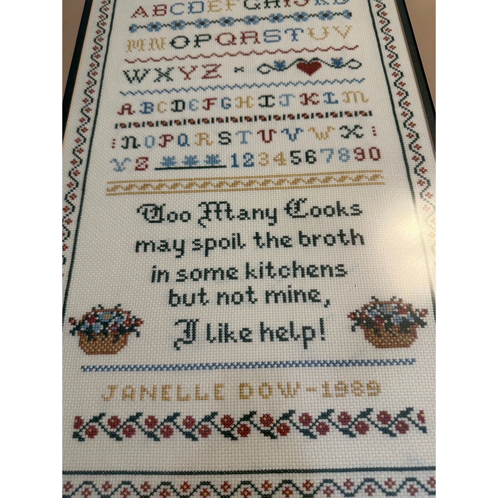 Vintage Cross Stitch Embroidery - Alphabet - With Letters Red and Numbers Kitchen Saying 1989