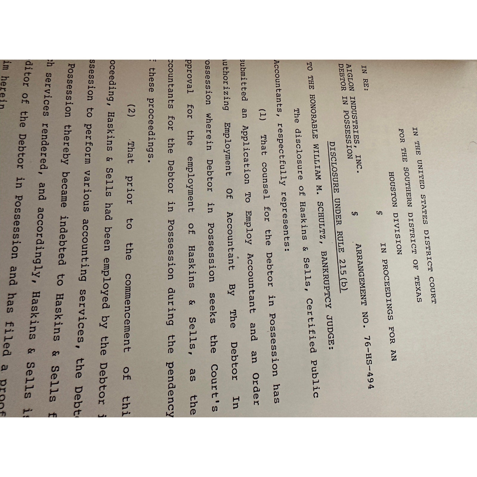 Aiglon Industries, Inc ET AL chapter XI Arrangement Proceedings NOS 76-HS-494, ET SEQ
