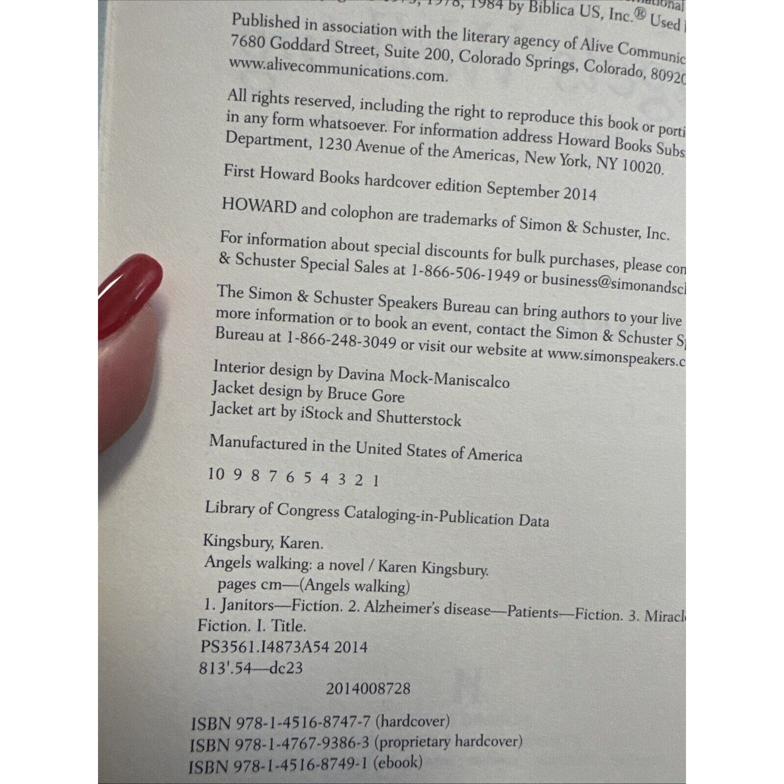 "Angels Walking" by Karen Kingsbury is a signed hardcover novel from the "Angels Walking Ser." It was published by Howard Books in 2014 and features a dust jacket. The book, part of the Christian romance genre, is written in English and has 384 pages. Measuring 8.4 inches in length, 5.5 inches in width, and 1.3 inches in height, it weighs 16.4 ounces.