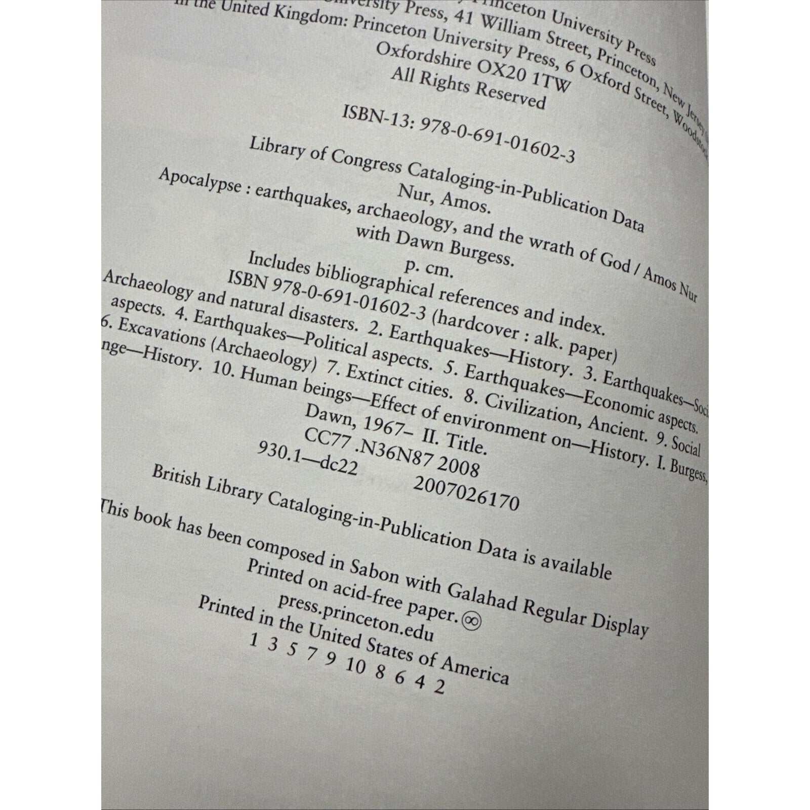 The book "Apocalypse: Earthquakes, Archaeology, and the Wrath of God" is a 328-page textbook published by Princeton University Press in 2008. Written by Dawn Burgess and Amos Nur, it delves into subjects such as environmental science, archaeology, sociology, seismology, and geology. The hardcover book weighs 1 lb and measures 9.6 inches in length, 6.4 inches in width, and 1 inch in height. It explores the impact of earthquakes on history and society, making it a comprehensive read for those interested in natural disasters and their consequences.