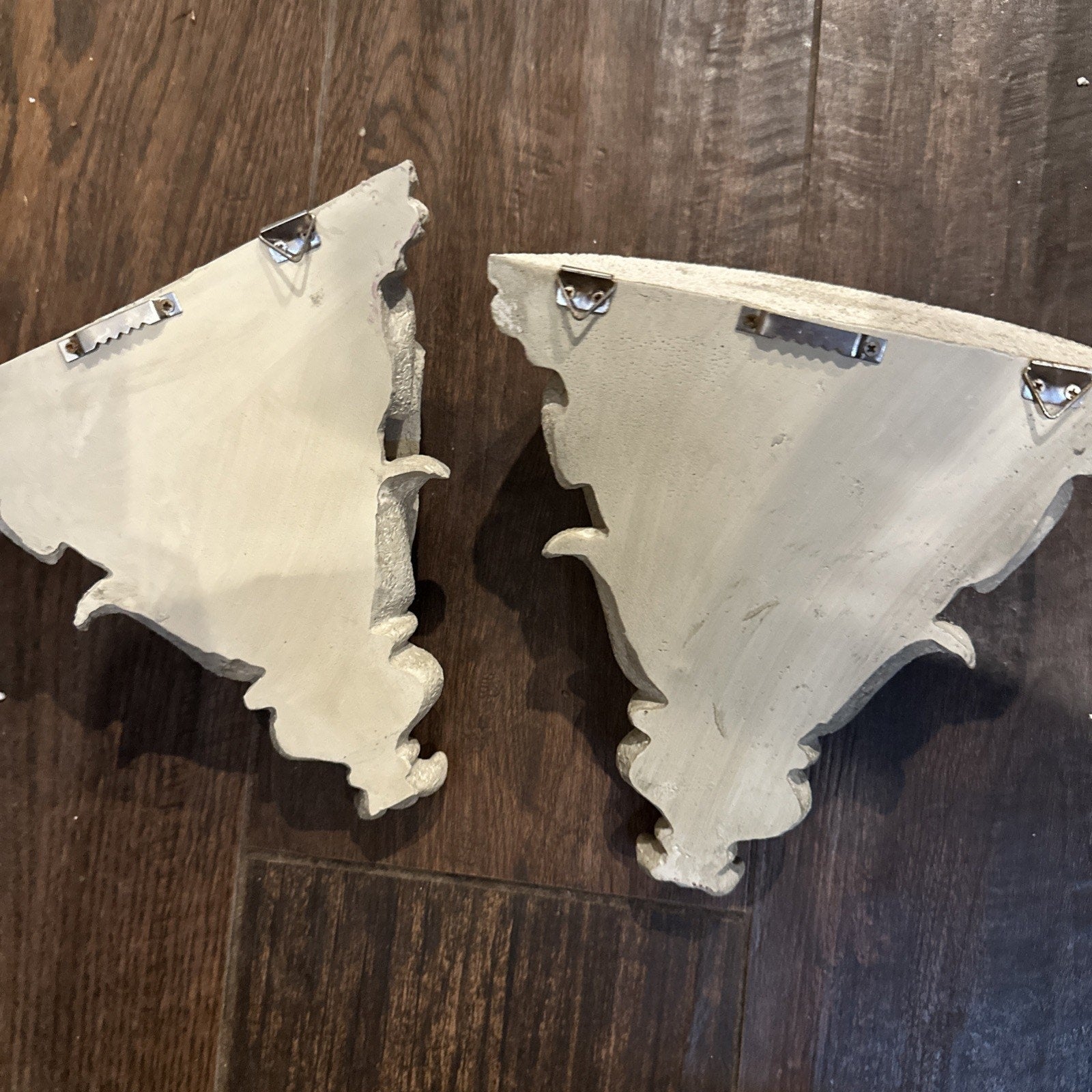 Set of 2 Art Deco Wall Hanging Shelf is a unique and stylish accent piece for any room in your home. The ornate design features a rectangular shape with a painted beige color, adding a touch of elegance to your space. Personalized with a patterned finish and a 1980s theme, this wall decor piece is both functional and decorative. The resin material and hanging design make it easy to mount on the wall, creating a charming display accent in your entryway, bathroom, kitchen, bedroom, living room, home office or study, or dining room.