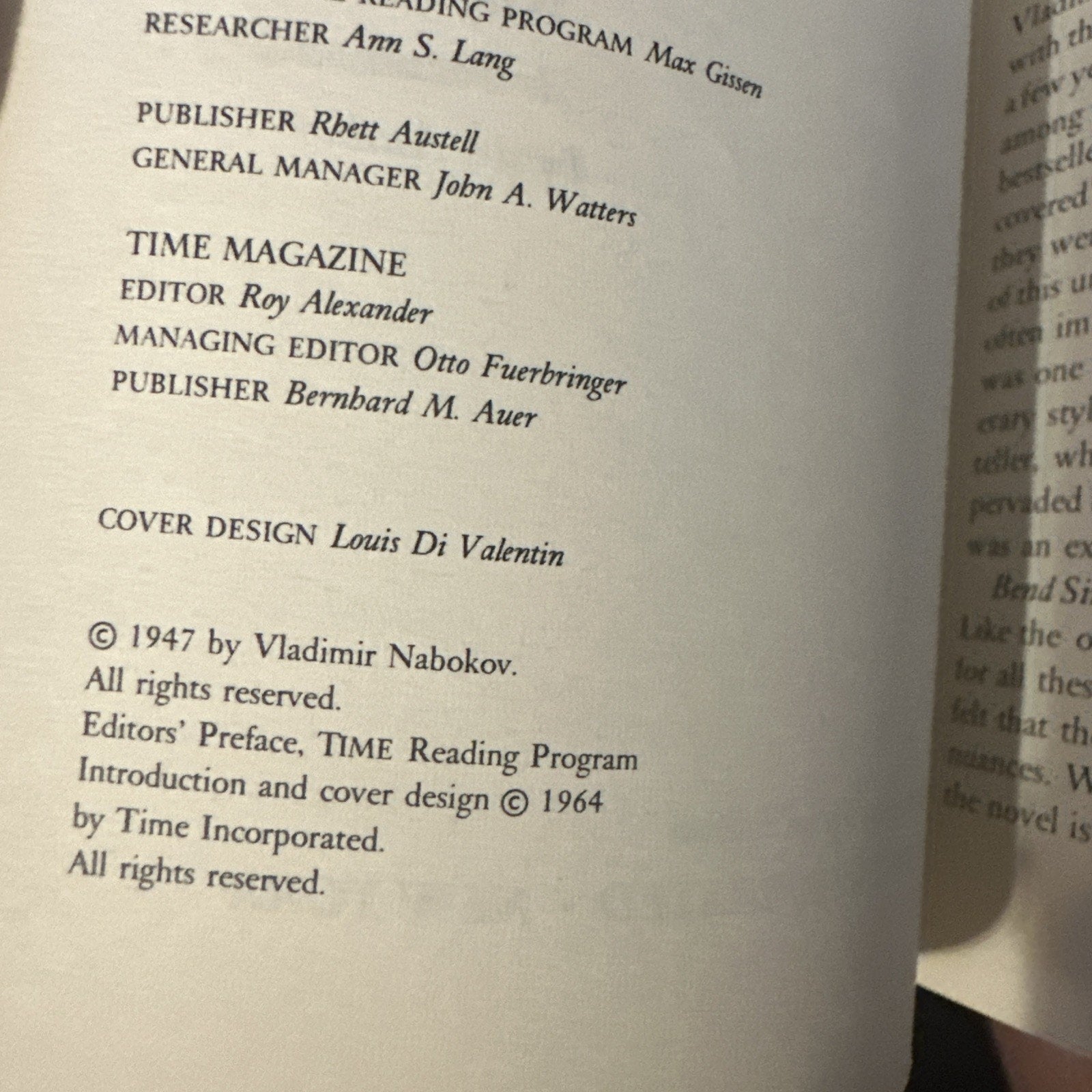 Dive into the world of Vladimir Nabokov with "Bend Sinister," a captivating narrative that explores the complexities of time and memory. This softcover edition, published by Time in 1964, offers readers a chance to experience one of Nabokov's most intriguing works without the constraints of a hardcover.