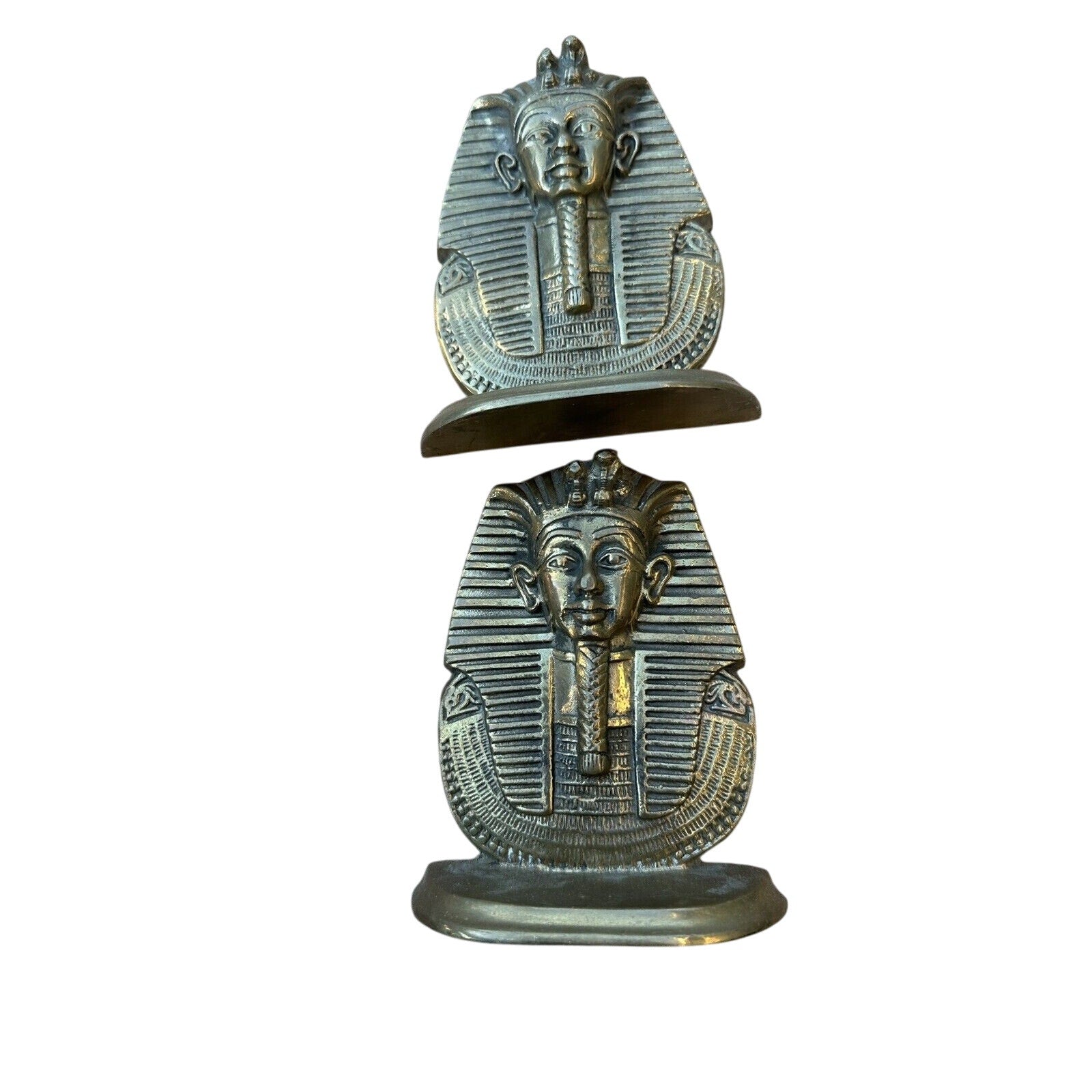 Brass Heavy Egyptian Pharaoh Head Bookends. Condition is Used. Shipped with USPS Ground Advantage.