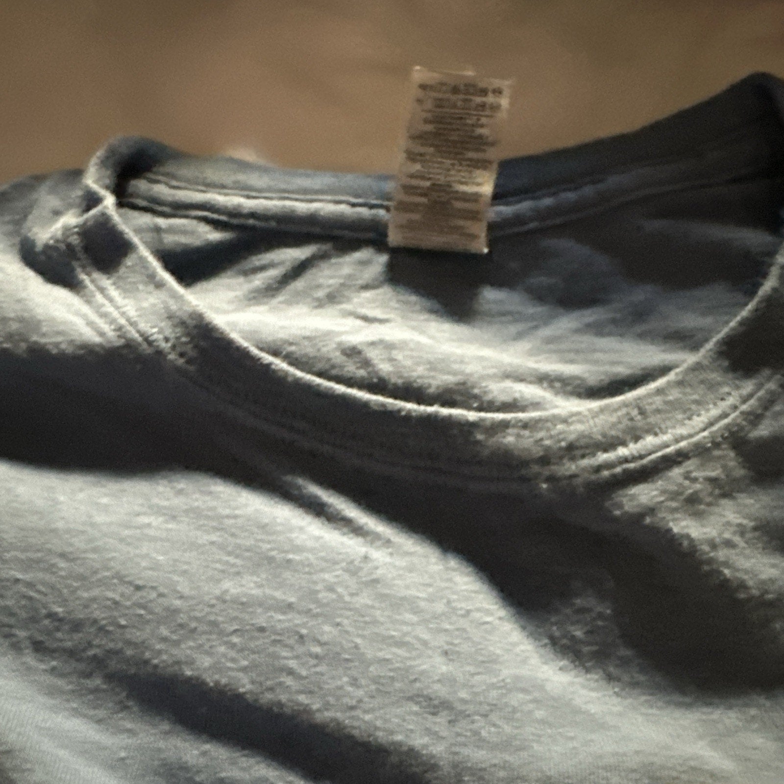 Capt. Tony's Saloon Shirt XL Vintage Screen Stars Double Sided. This unique T-shirt features a solid blue color with a crew neck and short sleeves. Made from a comfortable cotton blend jersey fabric, this shirt is perfect for casual wear. The shirt has a vintage look and feel, with a graphic print of stars on both sides. The shirt is a size XL, with a regular fit, and is perfect for any man who loves vintage clothing. The shirt is made in the United States, and is not handmade.