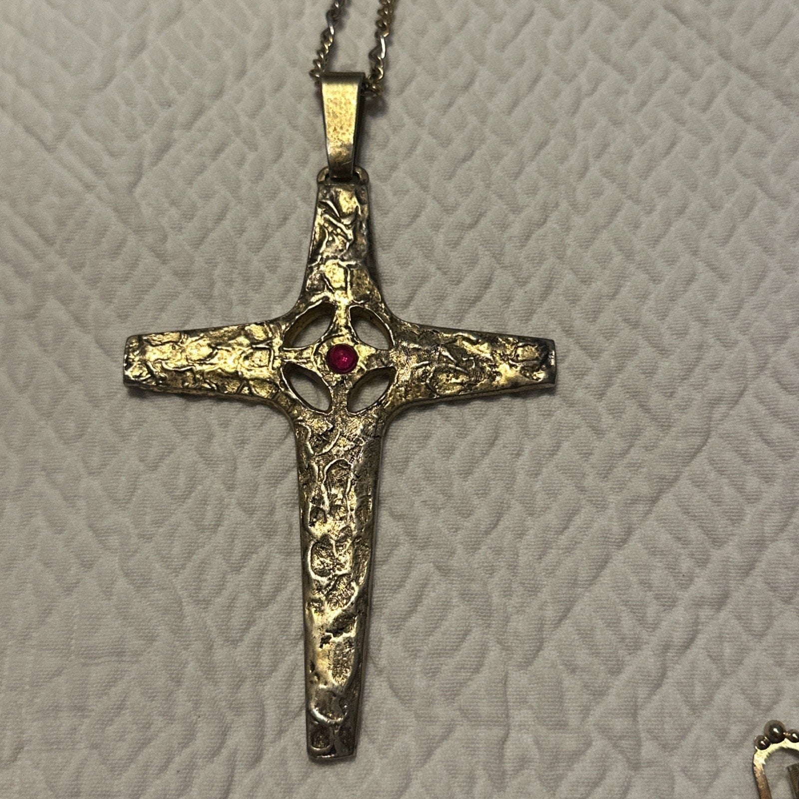 The Custom Made Bishop's Pectoral Cross is a beautifully crafted Sterling Silver cross that is plated with gold. This handcrafted piece is a symbol of faith and spirituality, perfect for Christian collectors or those seeking a meaningful religious artifact. Additionally, the chalice is included in the set, making it a complete and unique addition to any religious collection.