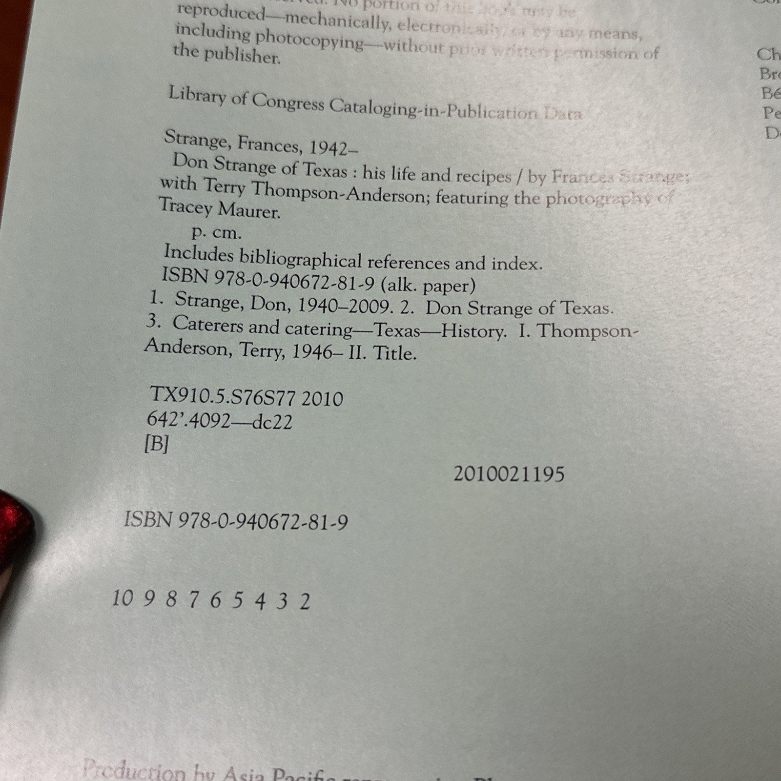 Don Strange of Texas : His Life and Recipes by Frances Strange 2010 Signed 1st