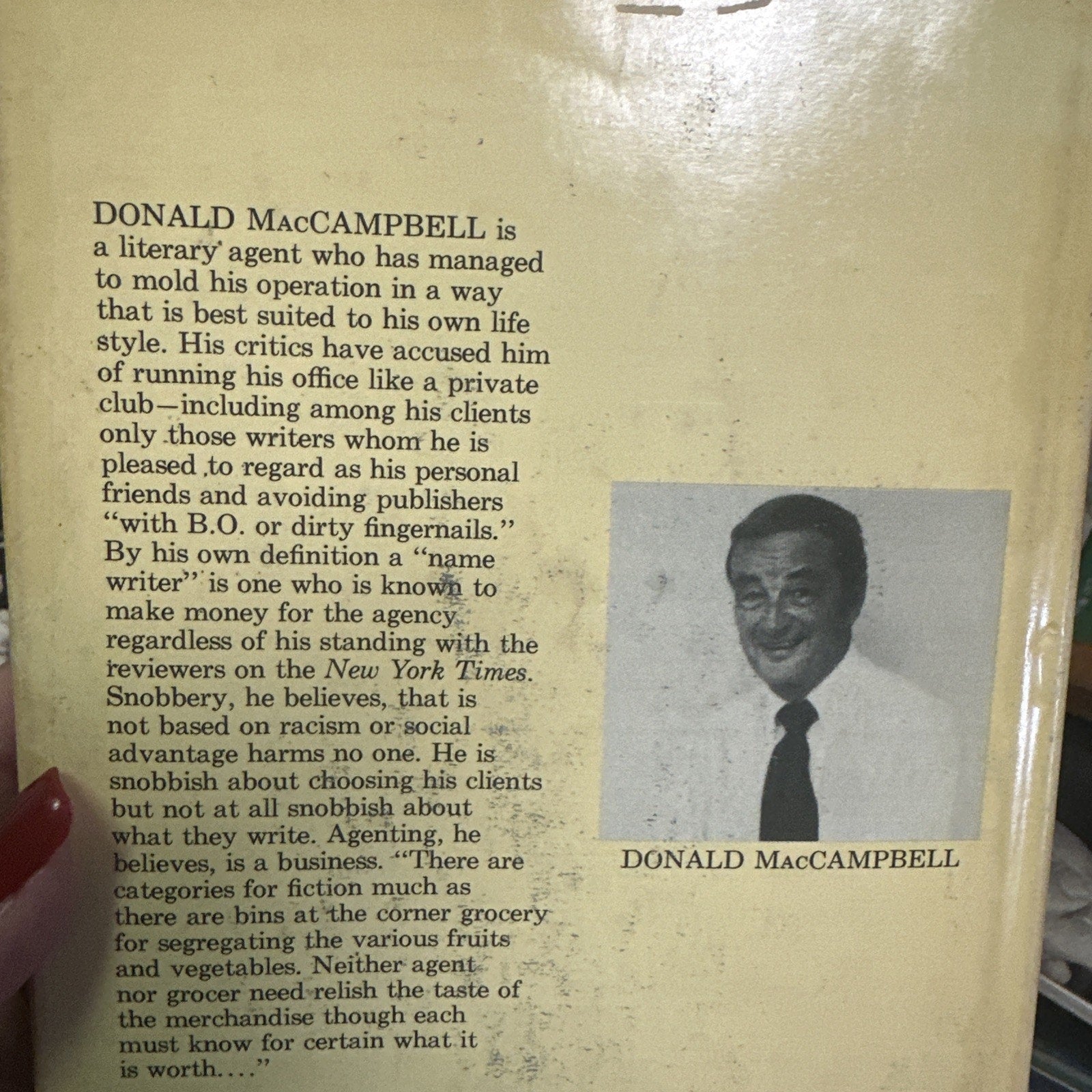 Explore the world of literary representation with "Don't Step on It - It might be a Writer" by Donald MacCampbell. This first edition hardcover book, published by Sherbourne House, comes with a dust jacket for added protection and collectability. Delve into the author's reminiscences about the writing industry and gain valuable insights into the world of literature and publishing. This book is a must-have for anyone interested in writing, reference, and the behind-the-scenes world of literary agents.