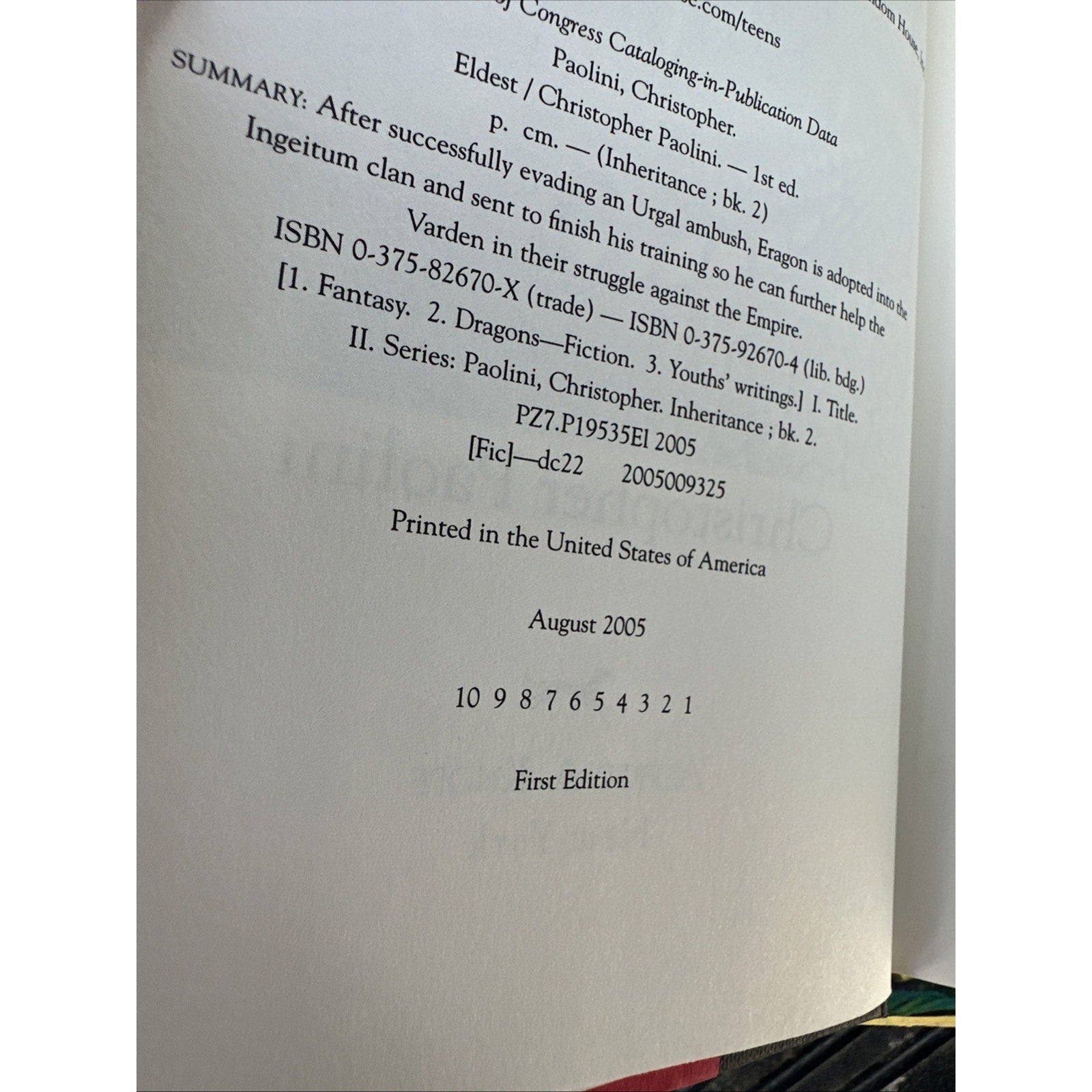 Immerse yourself in the world of fantasy with this first edition hardcover book, "Eldest Book 2: Inheritance" by Christopher Paolini. This novel is a captivating blend of action, adventure, fantasy, and science fiction genres, featuring epic stories of dragons, animals, and magical quests. The book is published by Alfred A. Knopf in 2005, and is intended for young adults and adults.