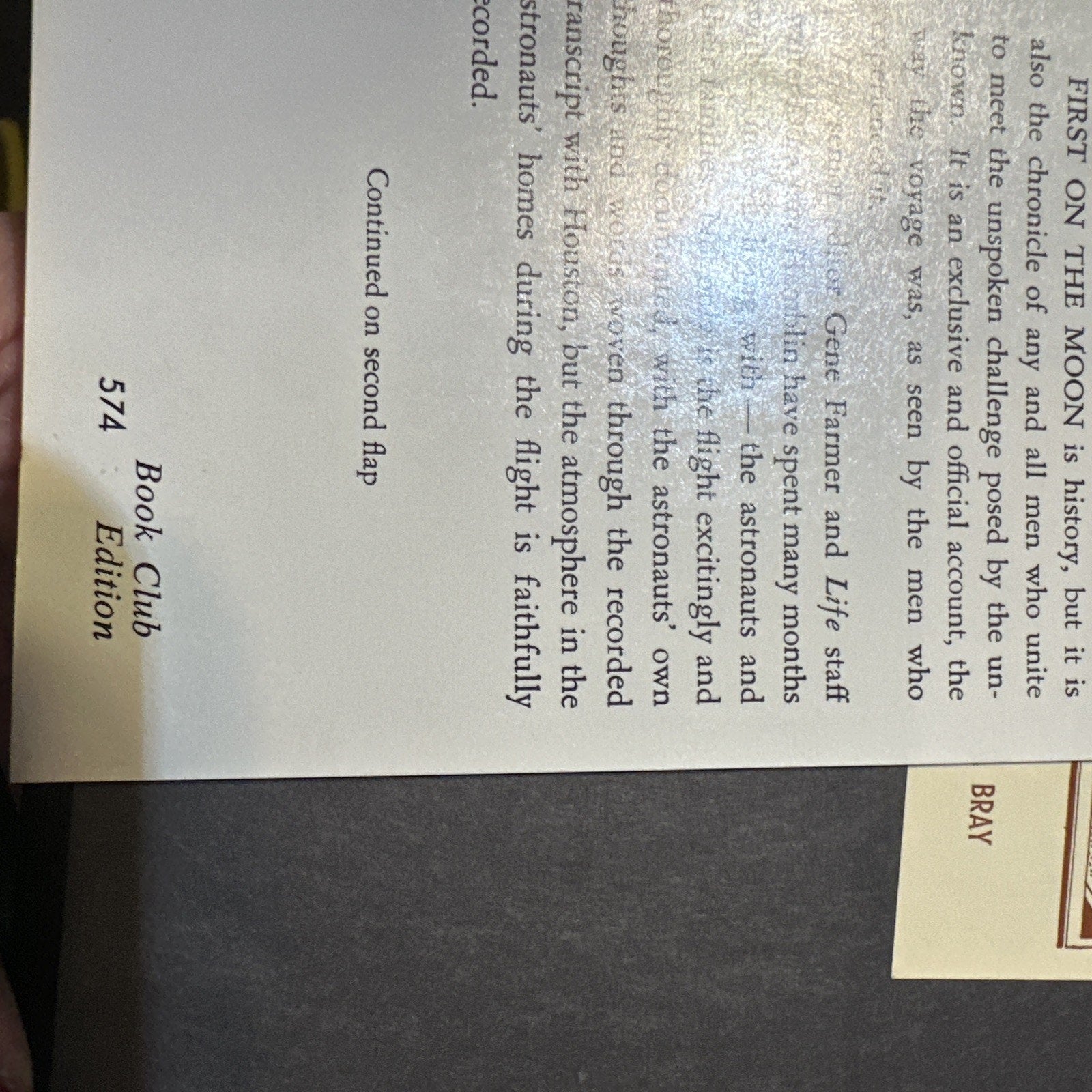 "First on the Moon: The Astronauts' Own Story" by Neil Armstrong is a hardcover book written in English. This first edition book club edition contains 448 pages and tells the story of the historic lunar landing from the perspective of the astronauts themselves. It provides a unique insight into one of the most memorable moments in human history, making it a valuable and sought-after addition to any book collection."