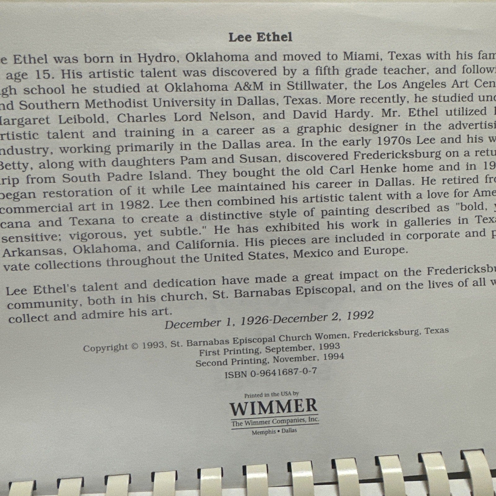 Flavors of Fredericksburg Saint Barnabas Episcopal Church Cookbook 1994 Texas