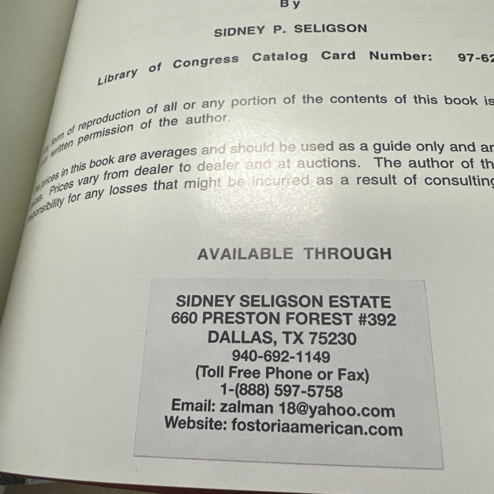 FOSTORIA AMERICAN A COMPLETE GUIDE SECOND EDITION SIDNEY SELIGSON HC SIGNED