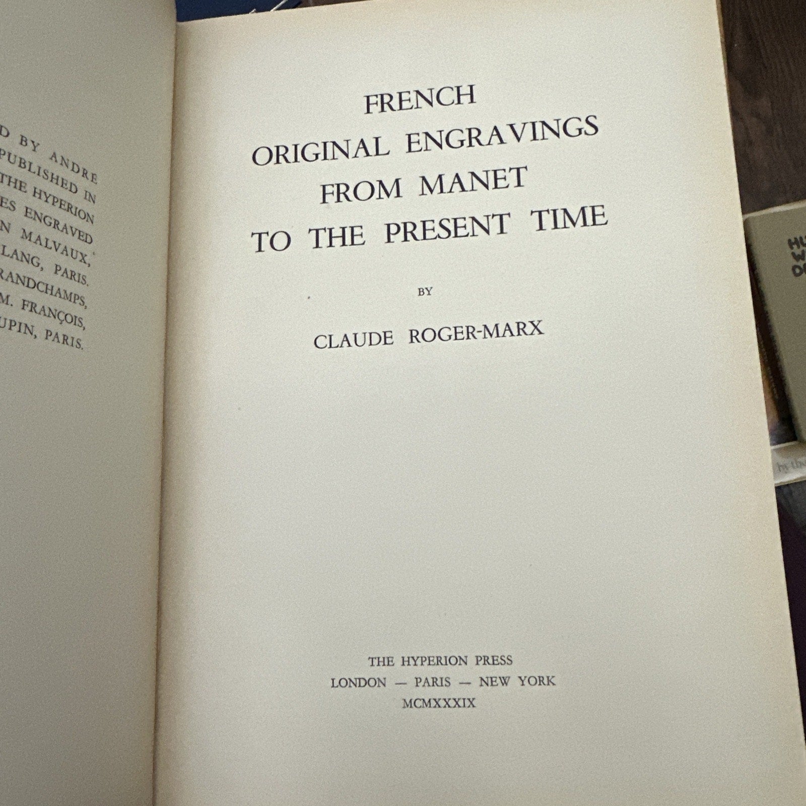 The book "French Original Engravings from Manet to the Present Time" by Claude Roger-Marx, published by The Hyperion Press in Paris in 1939, features English text and various illustrators. Focusing on art history and criticism, the book showcases original engravings from notable European artists, making it a valuable collectible for art and photography enthusiasts. With a hardcover binding, this book presents a comprehensive look at French artistry from the 19th and 20th centuries.