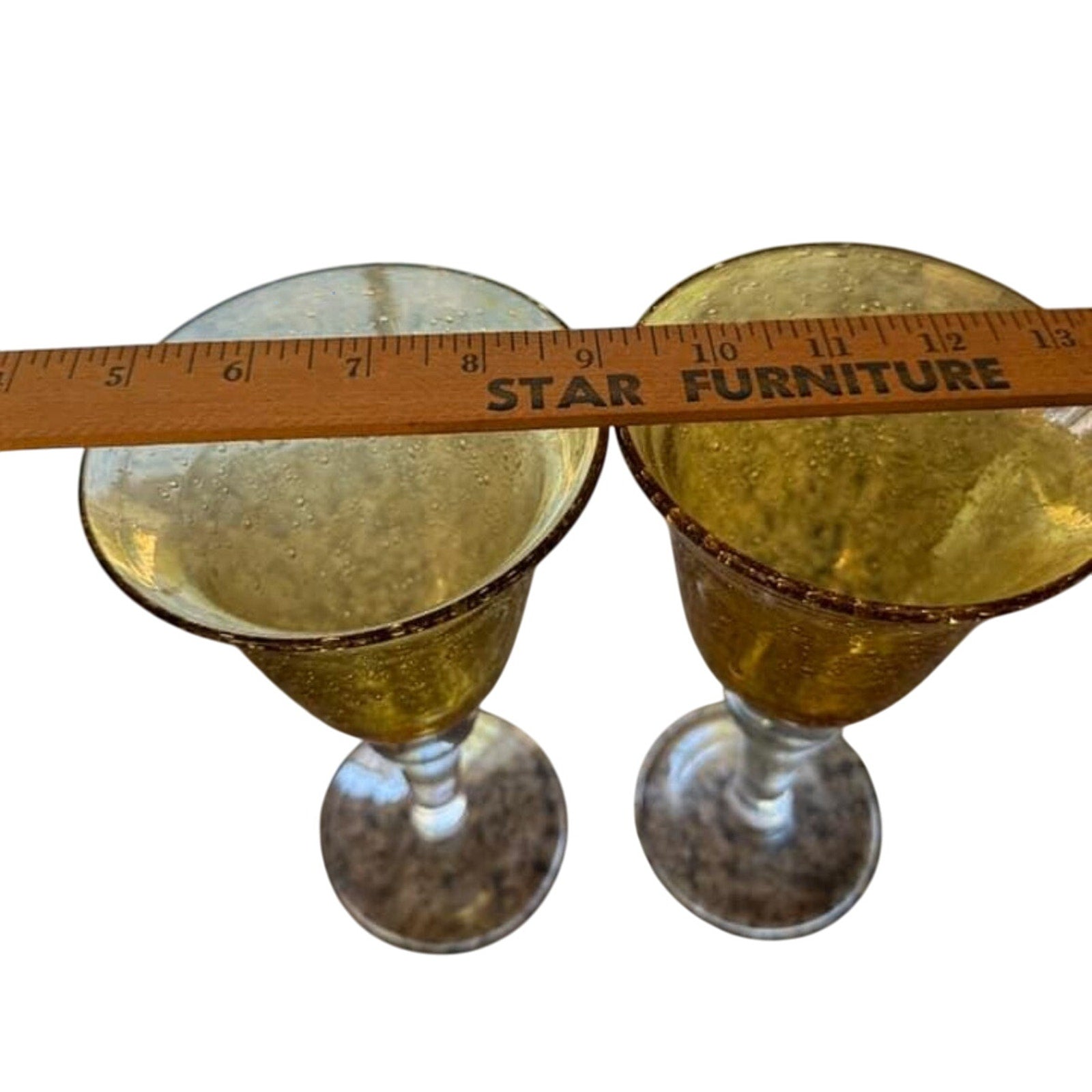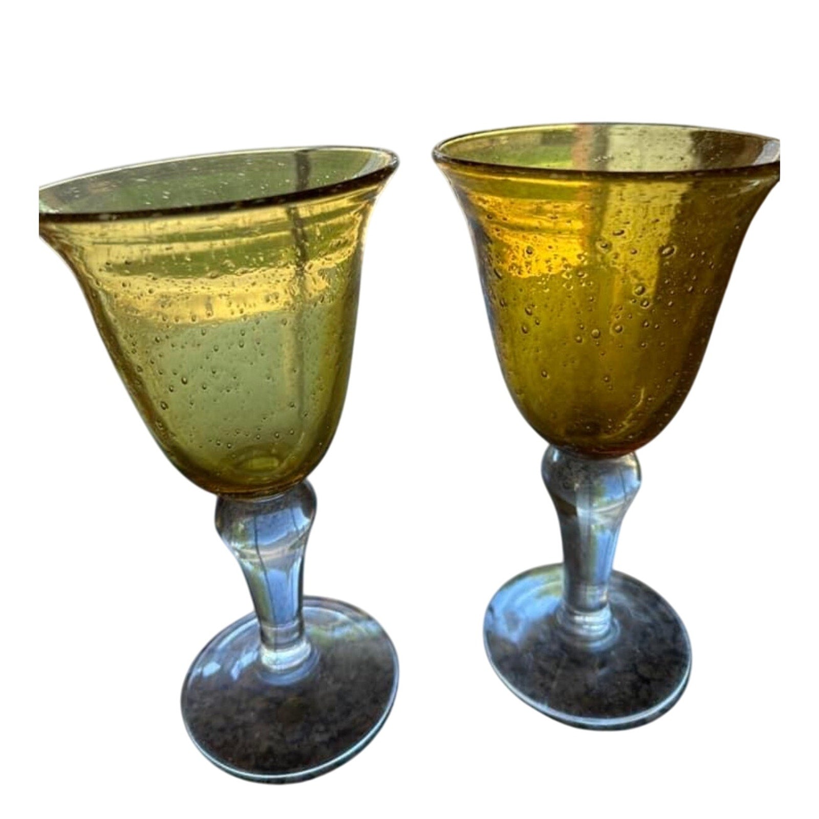 Handblown Amber Controlled Bubble Glass Wine Goblets