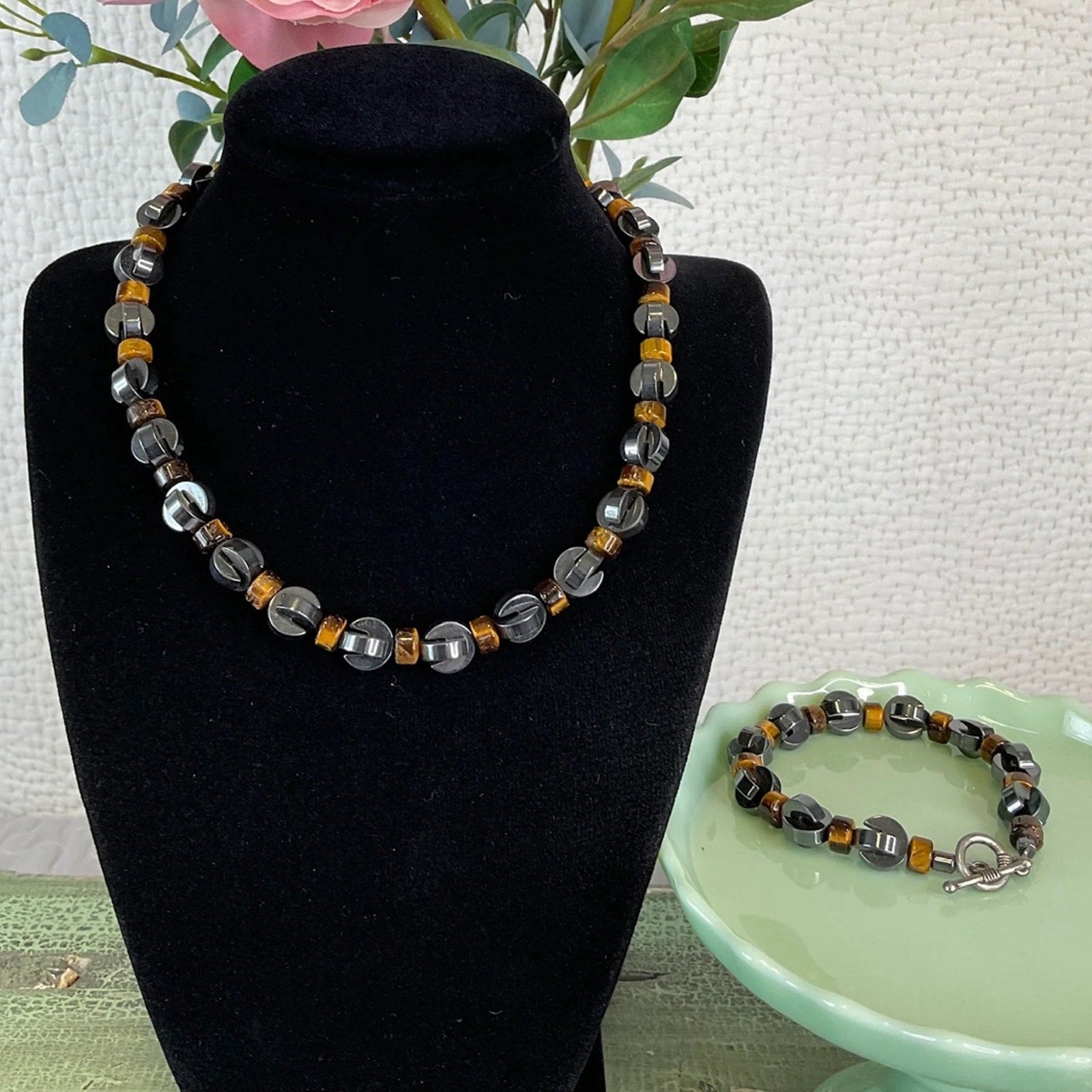 Brown Tiger Eye Magnetic Hematite necklace & matching Bracelet