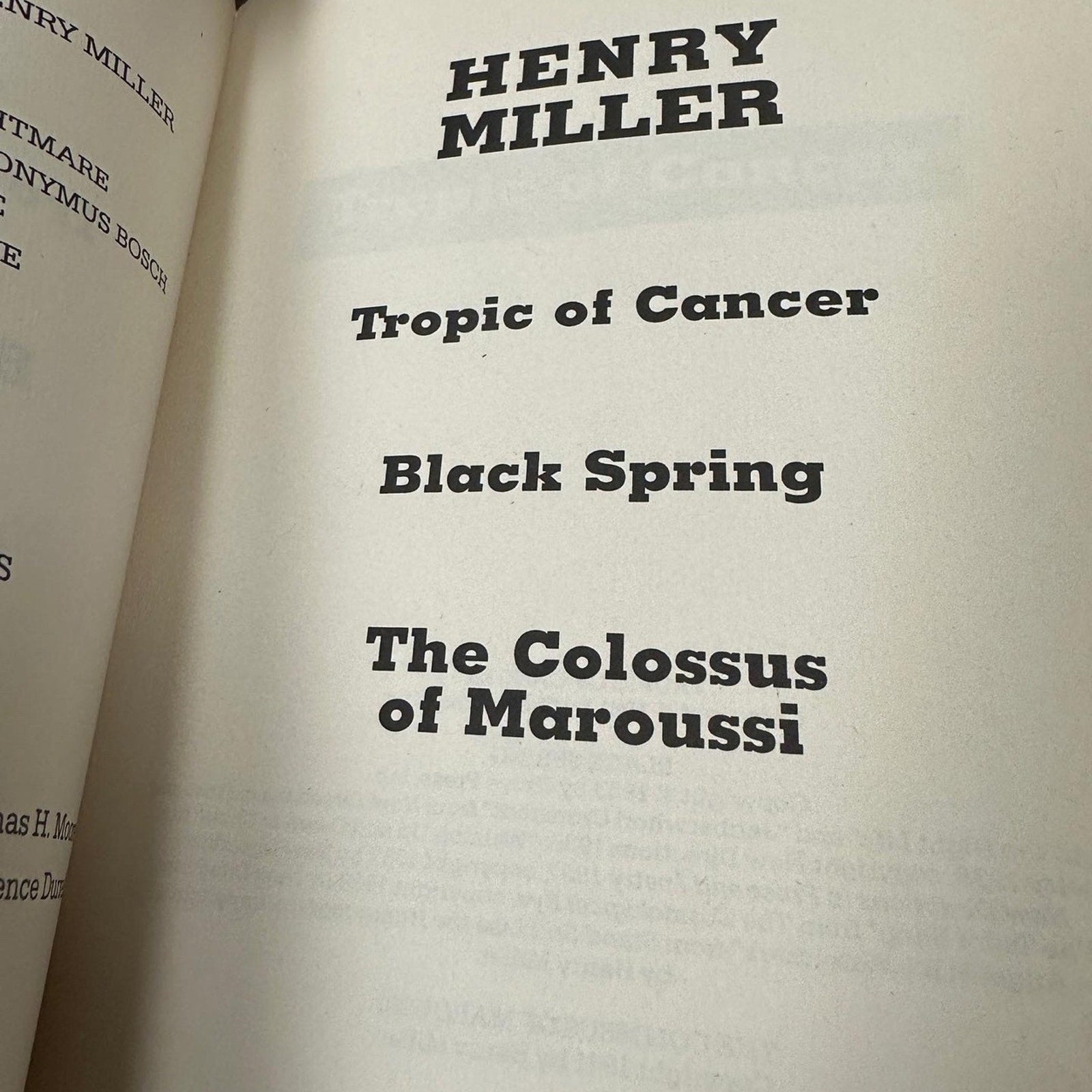 Henry Miller Tropic of Cancer, Black Spring, The Colossus of Maroussi