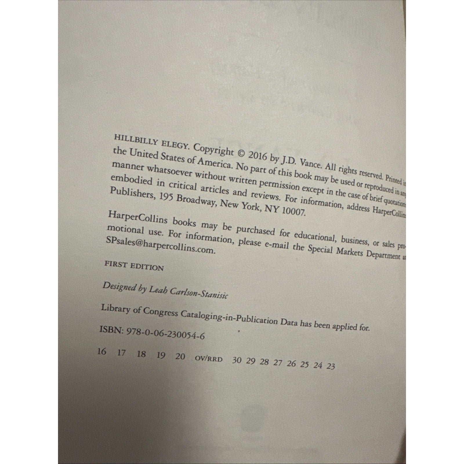 "Hillbilly Elegy: A Memoir Of A Family And Culture In Crisis" by J.D. Vance is a compelling nonfiction book that delves into the author's personal journey growing up in a working-class family. The book explores themes of social classes, economic disparity, and the struggles faced by many in the United States. Published by HarperCollins in 2016, this first edition hardcover includes a dust jacket and is intended for a wide audience of young adults and adults interested in topics related to biography, business, history, and social science. With a focus on Vance's own experiences, the book offers a unique perspective on issues relevant to many in today's society.