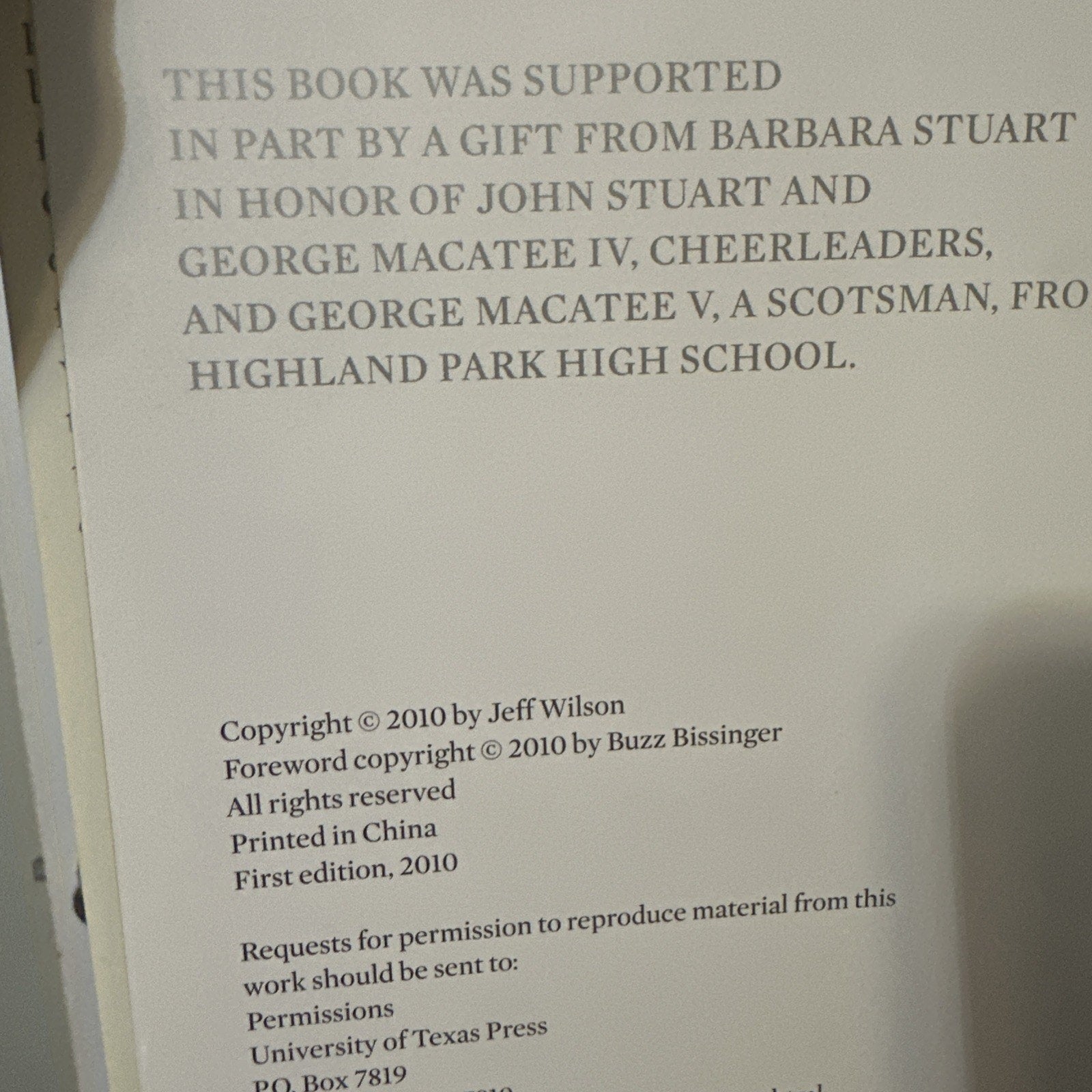 "Home Field: Texas High School Football Stadiums from Alice to Zephyr" by Jeff Wilson is a first edition hardcover book published by University of Texas Press in 2010. The book, intended for young adults and adults, features photography by the author and showcases a variety of Texas high school football stadiums. With a focus on sports, education, and physical education, the book covers the subjects and themes related to football, making it a valuable resource for fans and enthusiasts of the sport. Signed by the author, this book is a must-have for those interested in the world of Texas high school football.