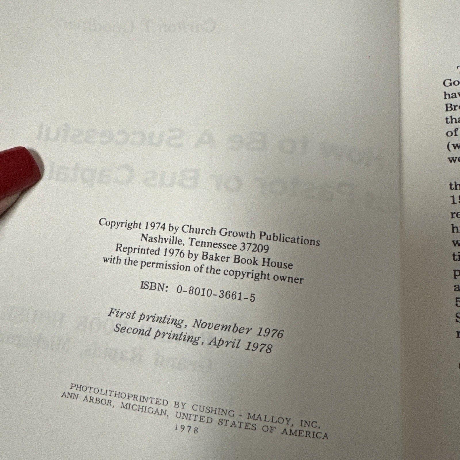 This book is a guide on how to be a successful bus pastor or bus captain. It was published in 1974 by Baker Books and written by Carlton Goodman. The book has 183 pages and is a trade paperback with an ISBN-10 of 0801036615. It is in English and covers topics such as Christian ministry and evangelism. The book weighs 0.5 pounds and is categorized under Books & Magazines and Books.