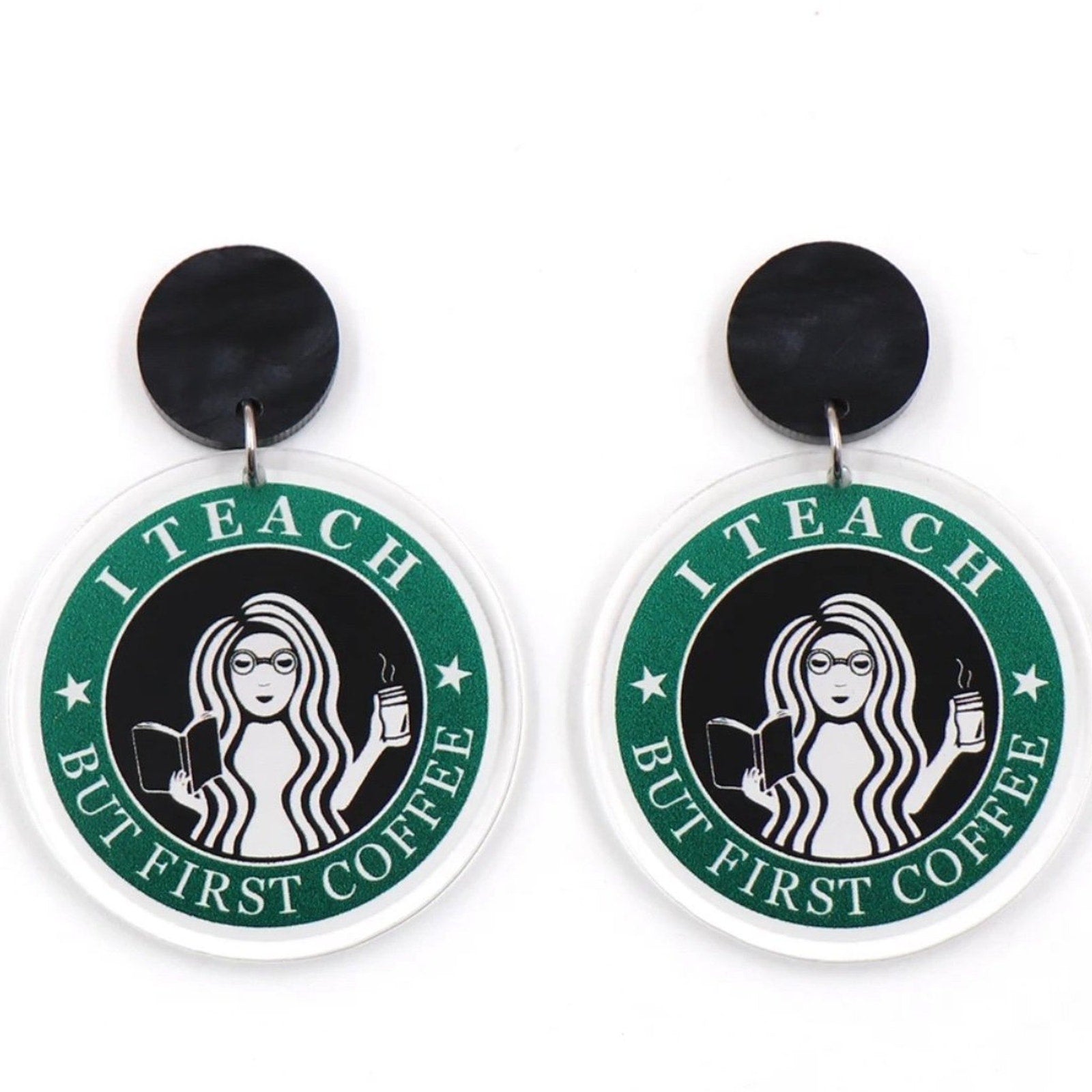 I Teach but First Coffee earring cute teacher earrings