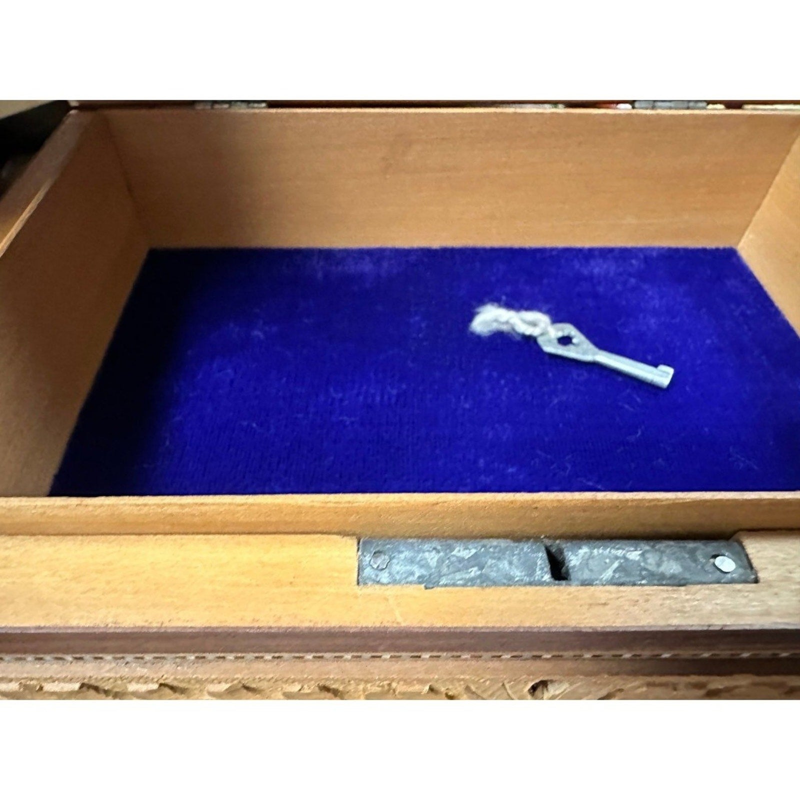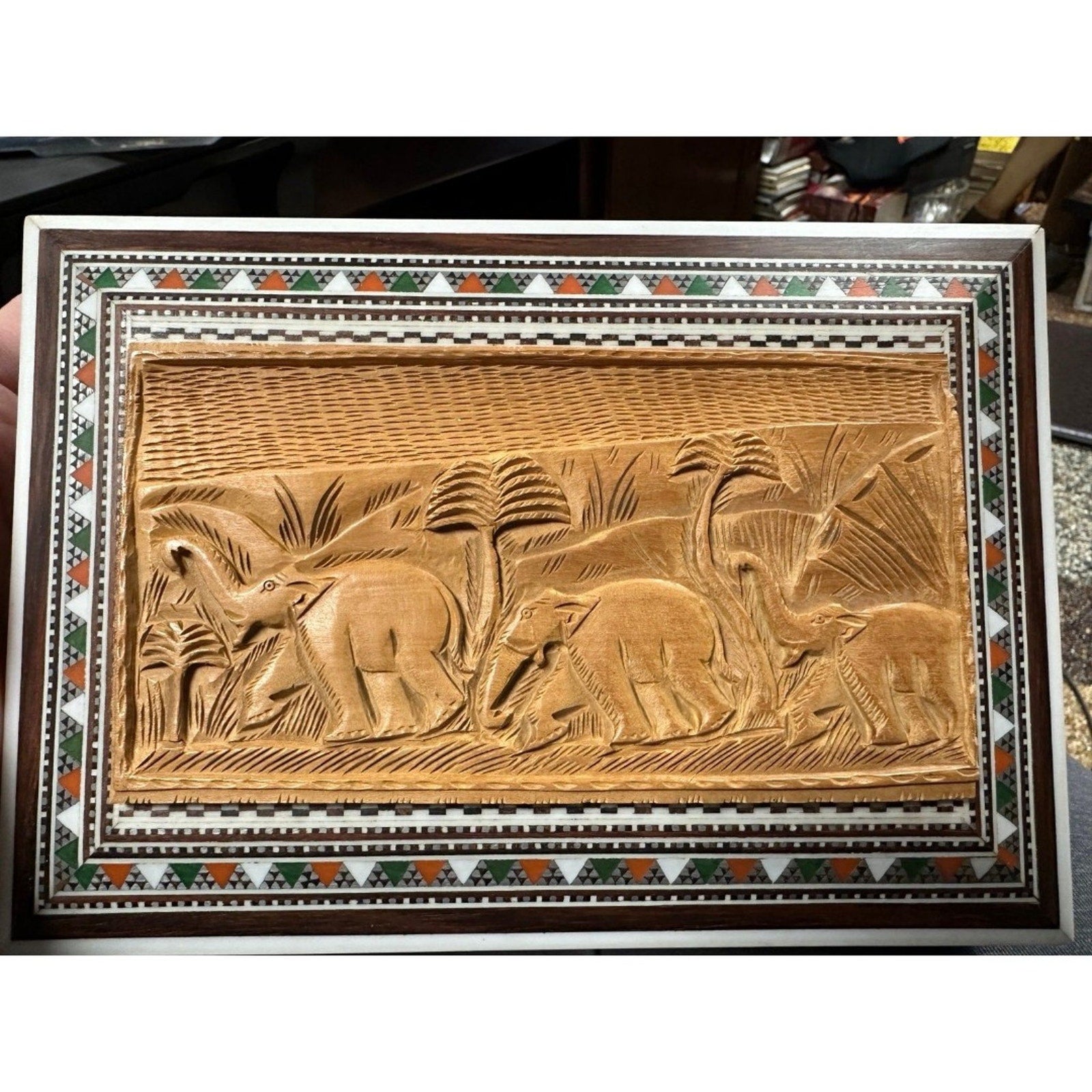 Inlaid & hand carved wood mosaic work vintage Art Deco antique jewellery box 7x5