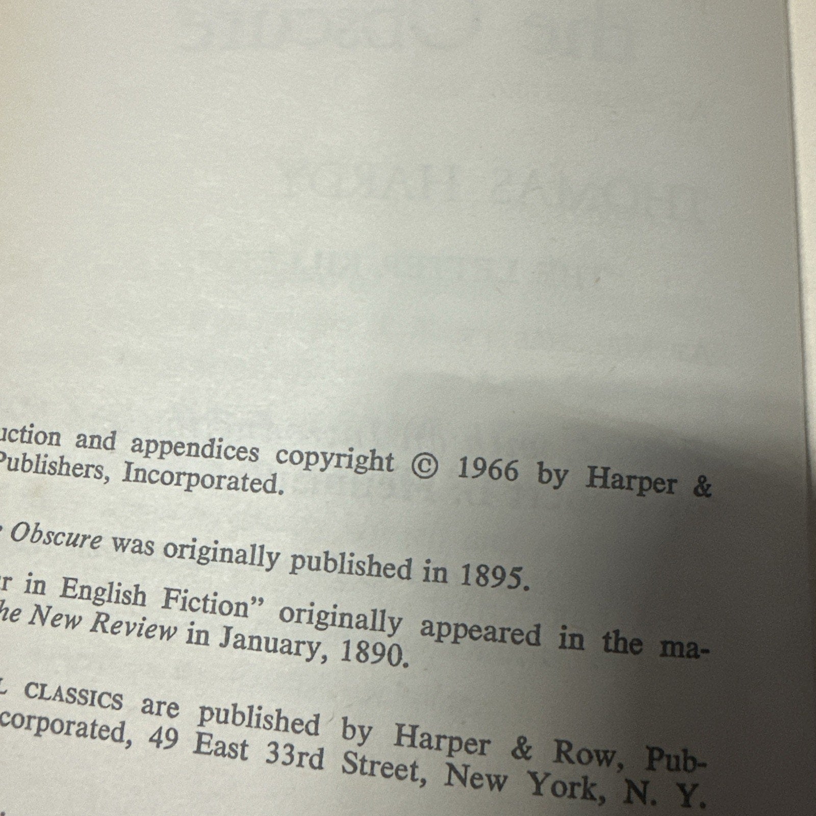 Experience the classic Hardy novel "Jude The Obscure" in its vintage 1966 hardcover edition, published by Harper & Row. This timeless piece of literature and fiction, written in English, comes with its original dust jacket for added collectibility. Delve into the intricate narrative set in the fictional town of Christminster, as Hardy explores themes of love, ambition, and social class. This book is a must-have for any literature enthusiast or collector of classic novels.