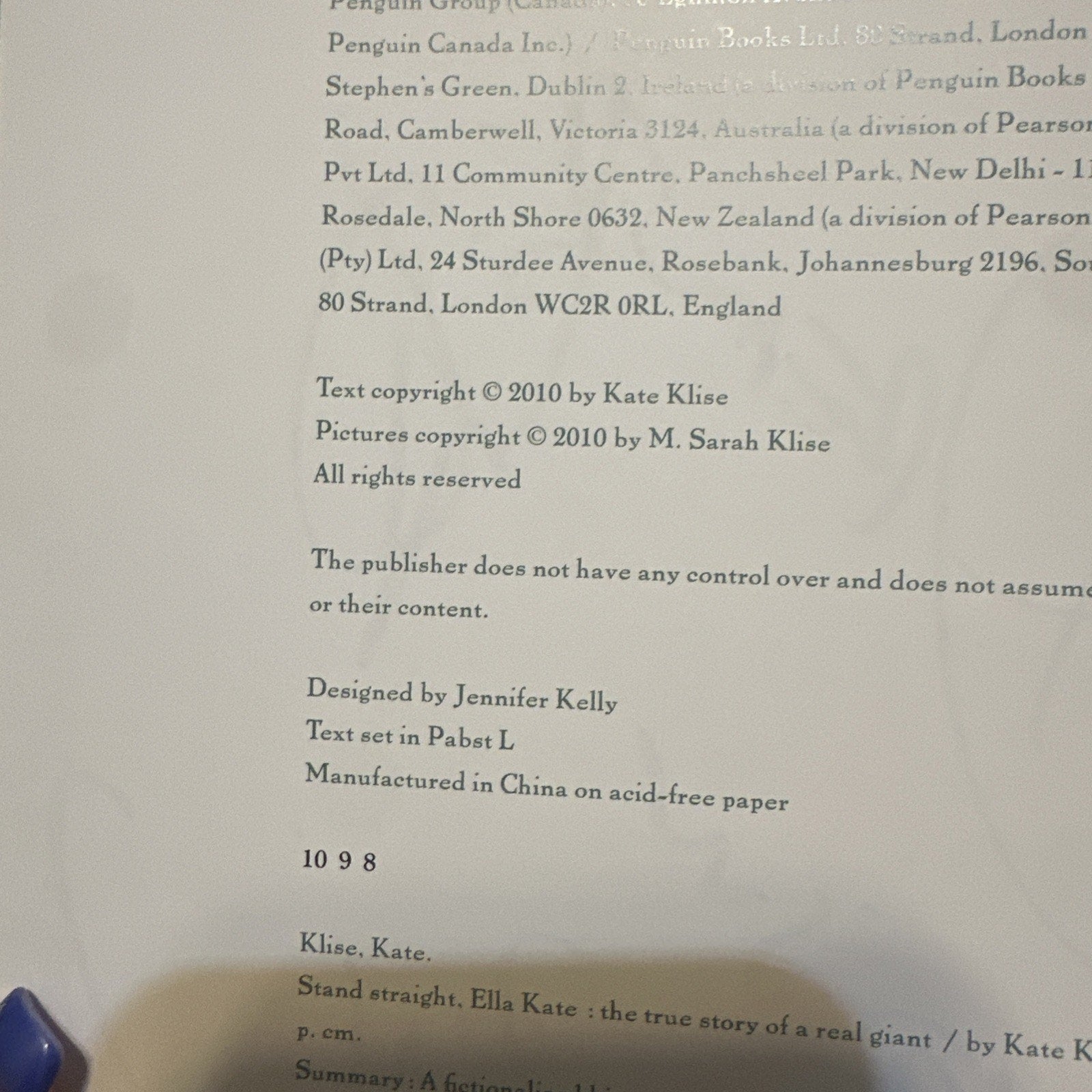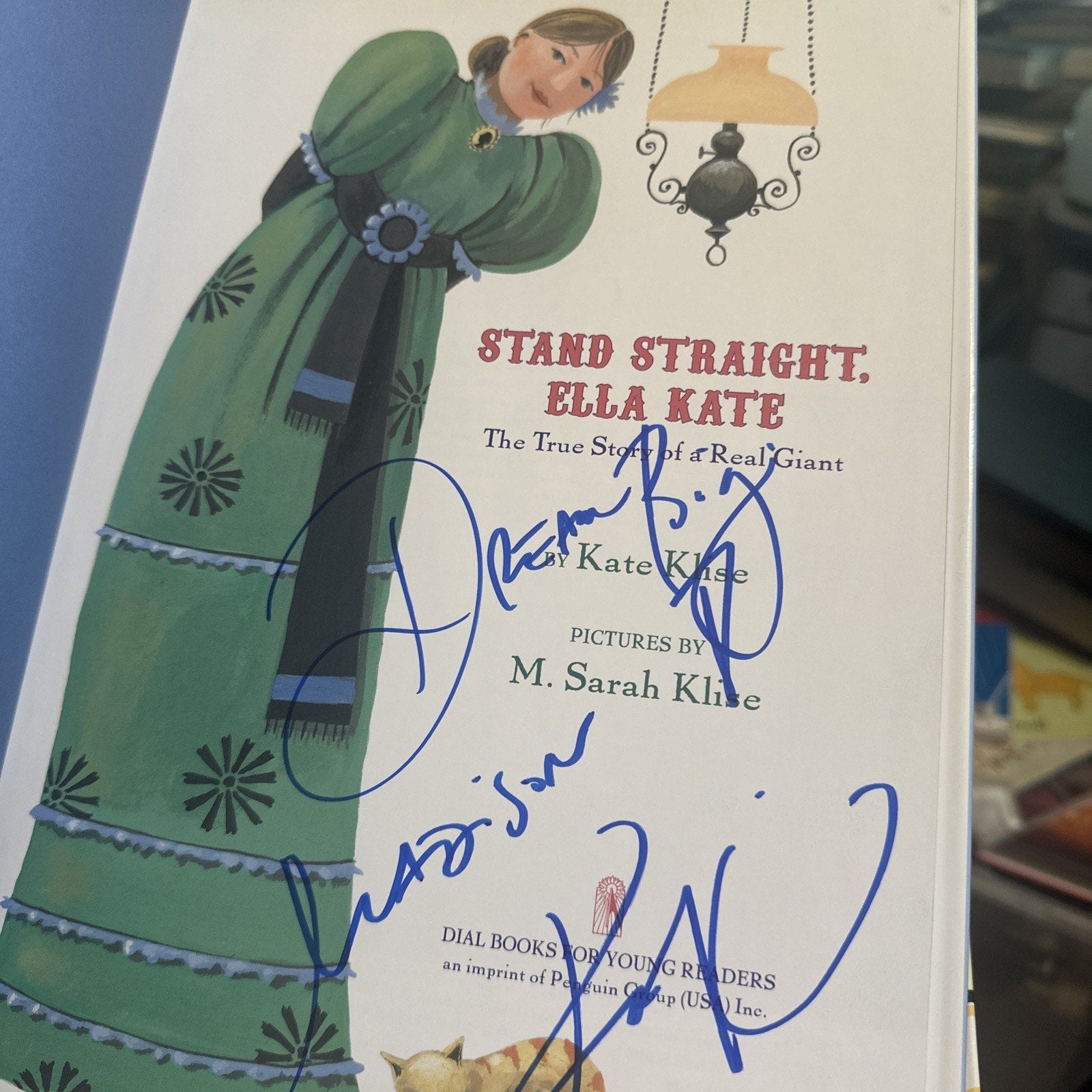 "Stand Straight Ella" by Kate Klise and M. Sarah Klise. Published by Dial Books in 2010, this original edition is a special collectible for fans of children's books. The authors have signed the book, adding an extra layer of value and significance to this unique piece for any book collector or enthusiast.