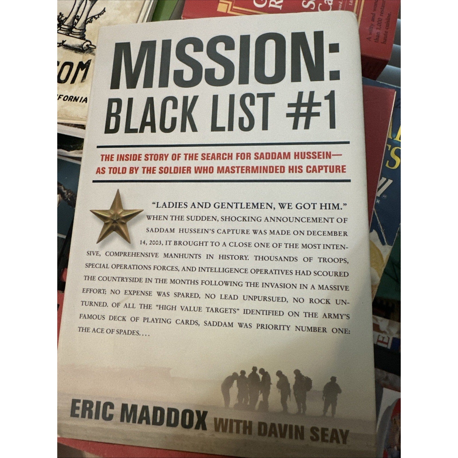 "Mission Blacklist #1" by Eric Maddox, published by HarperCollins Publishers LLC in 2008. This military-themed book is a collectible item with special attributes including a dust jacket and being an original print.