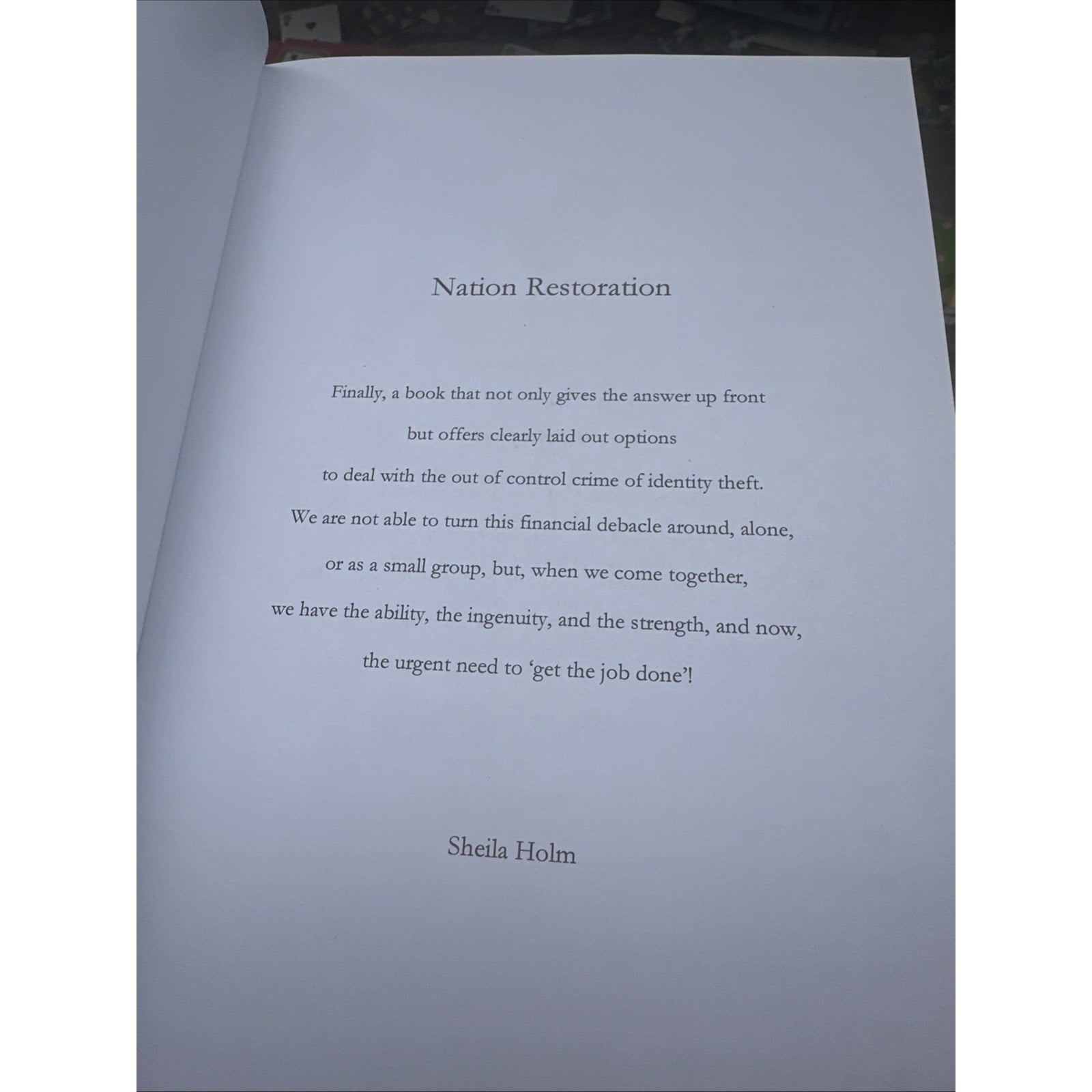 Nation Restoration by Sheila Holm: New