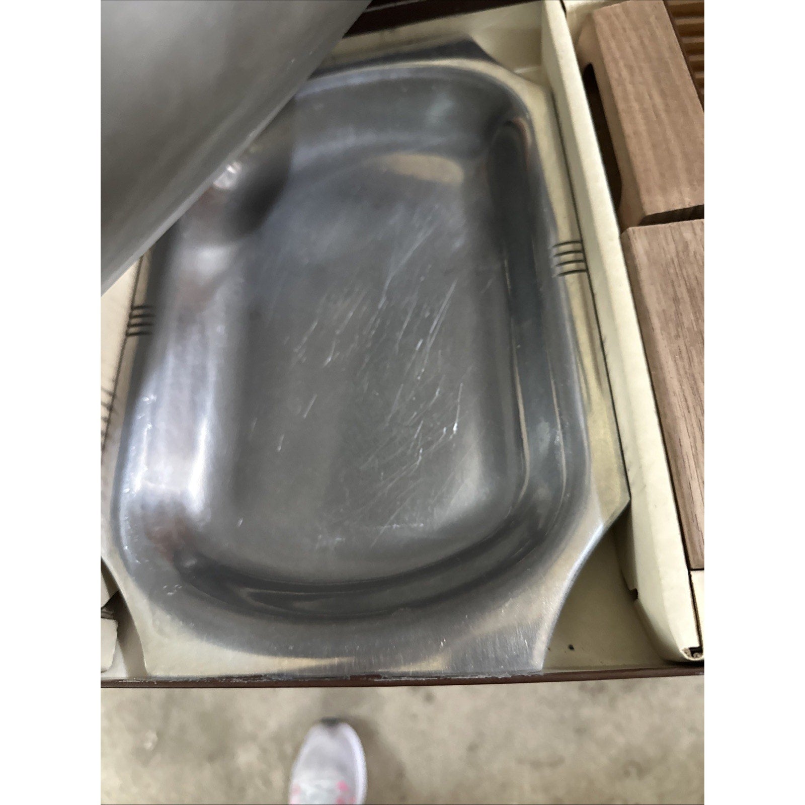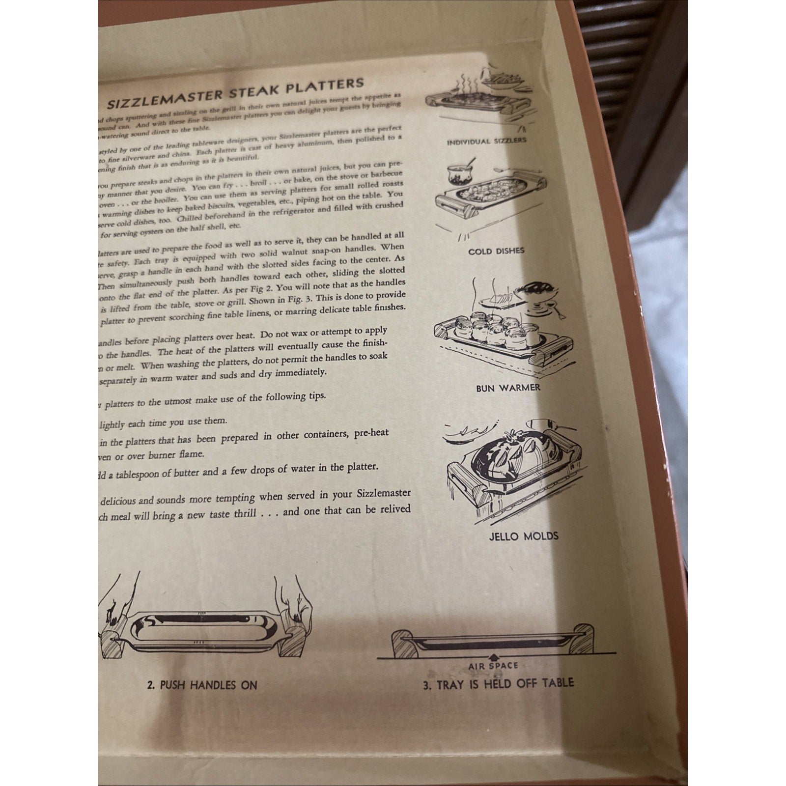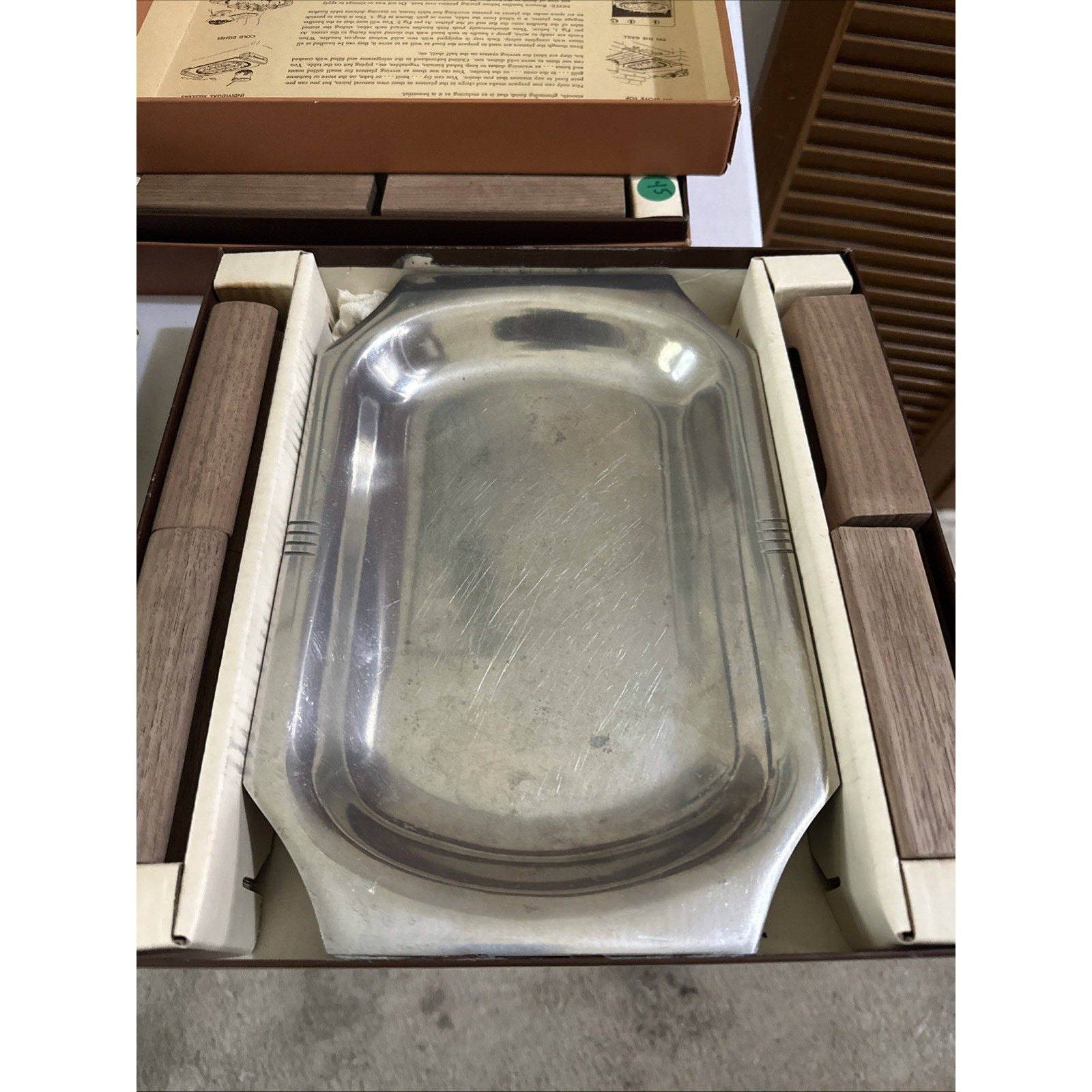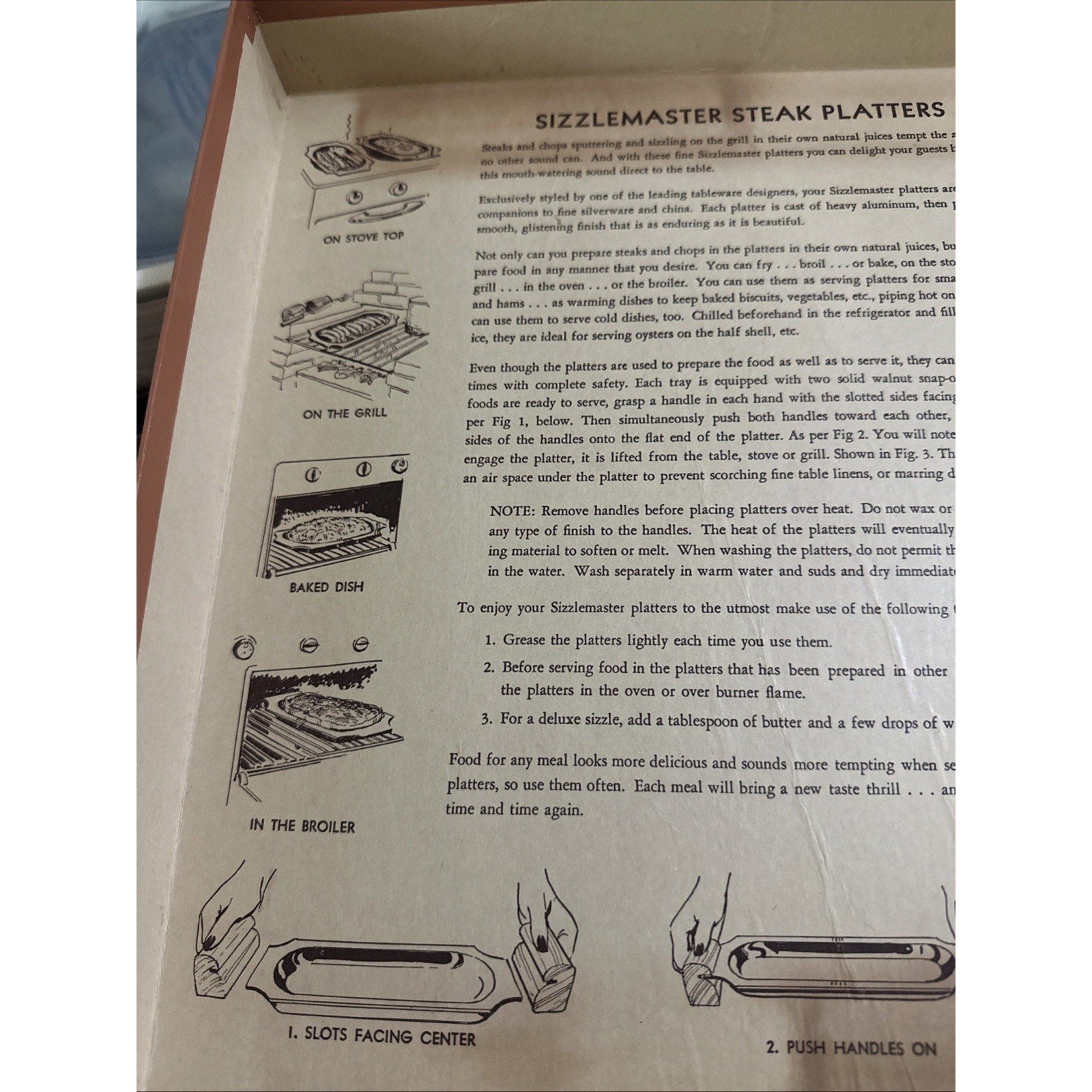 New Custom Craft Set of 2 Sizzlemaster Steak Platters w/ Walnut Handles