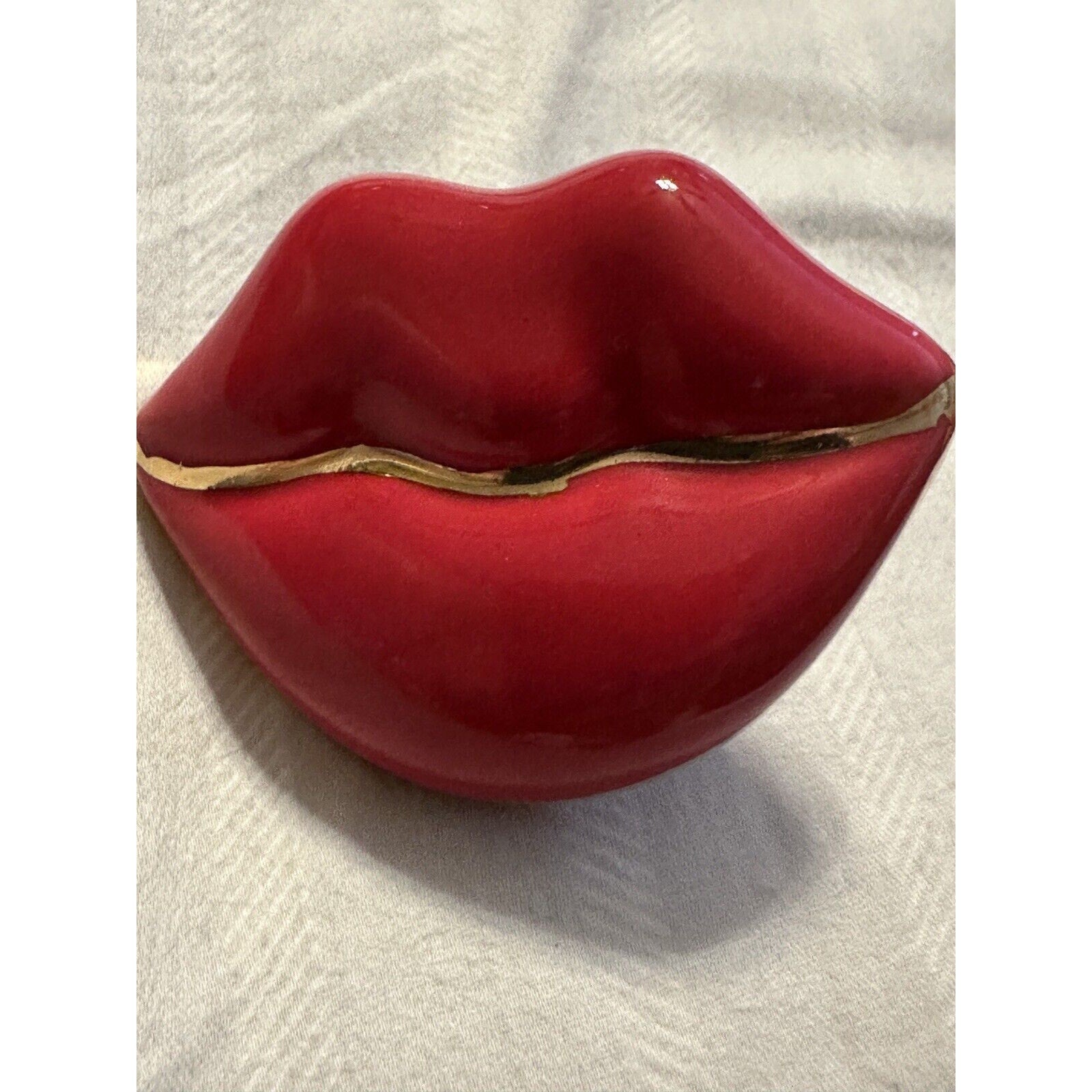 Nora Fleming A249 Smooches Valentine Red Lips Gold Trim Platter Charm