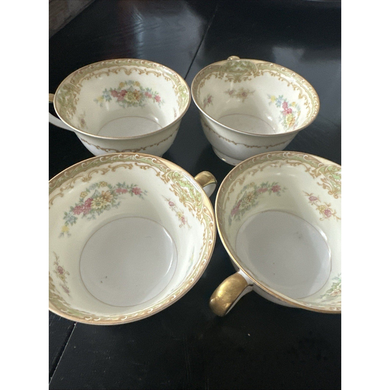 One cup has small chip on bottom & one saucer has chip see photos