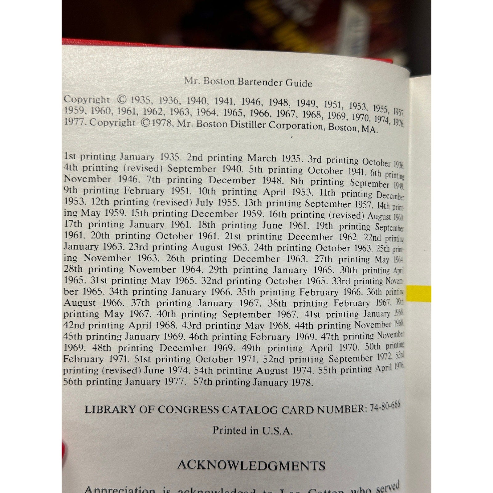 Old Mr. Boston De Luxe Official Bartender's Guide 57th Printing 1978 Hardback