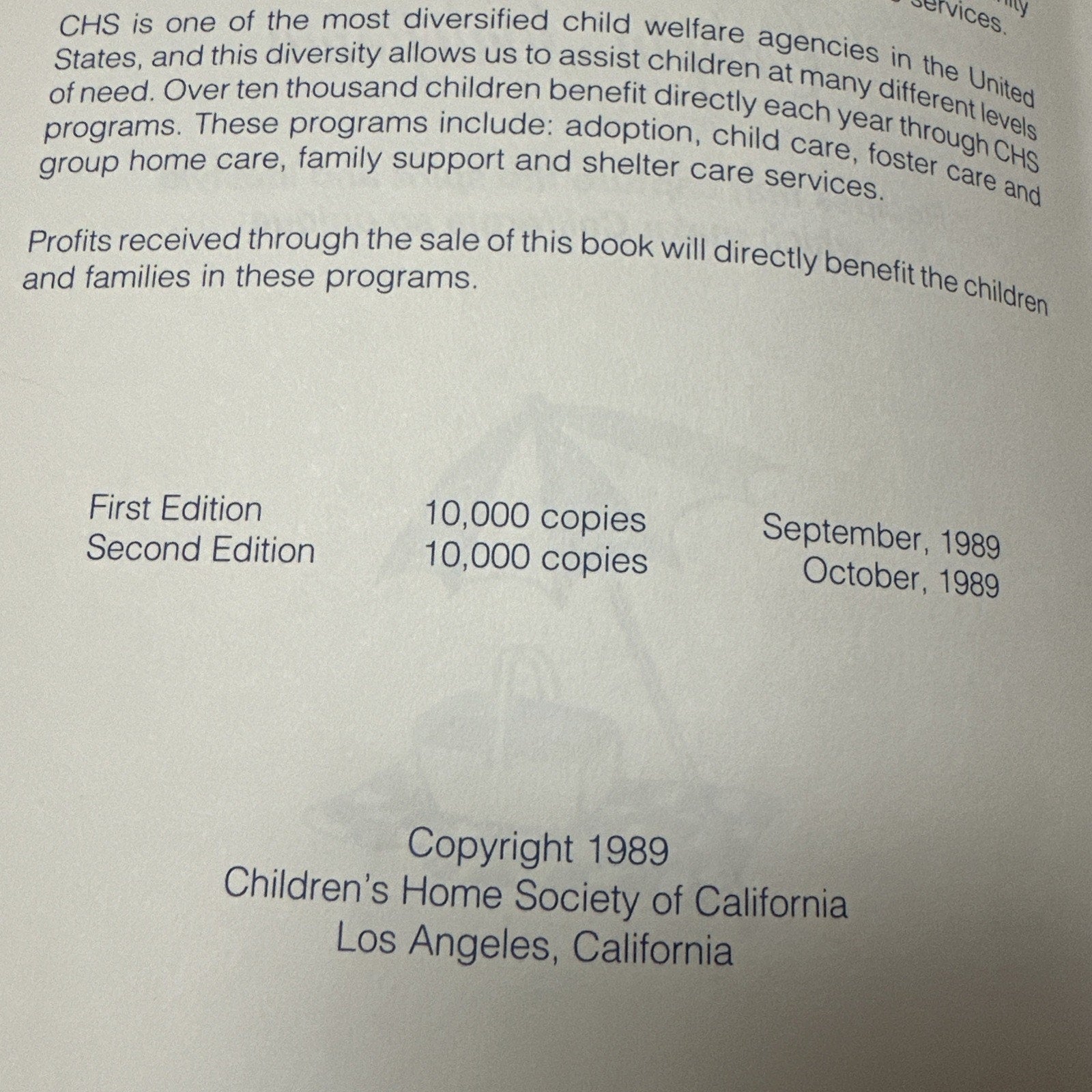 Delve into the heart of Californian culture with "Only in California: Recipes That Capture the Spirit and Lifestyle Which Make California So Unique." This hardcover gem, published in 1989 by the Children's Home Society of California, offers a culinary journey through the Golden State's regional delicacies and enduring customs. Authored by the staff of the Children's Home Society of California, it boasts 254 pages of mouth-watering dishes and insightful social commentary.