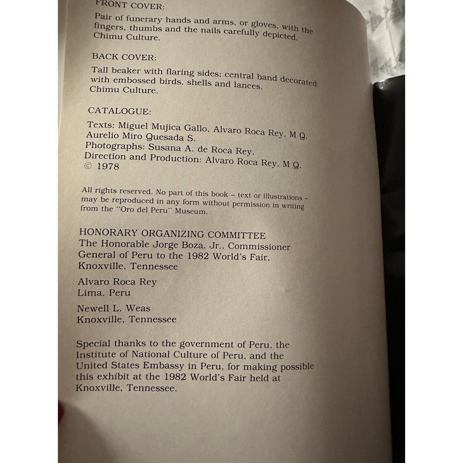 Oro Del Peru 1982 World's Fair museum exhibition program, book