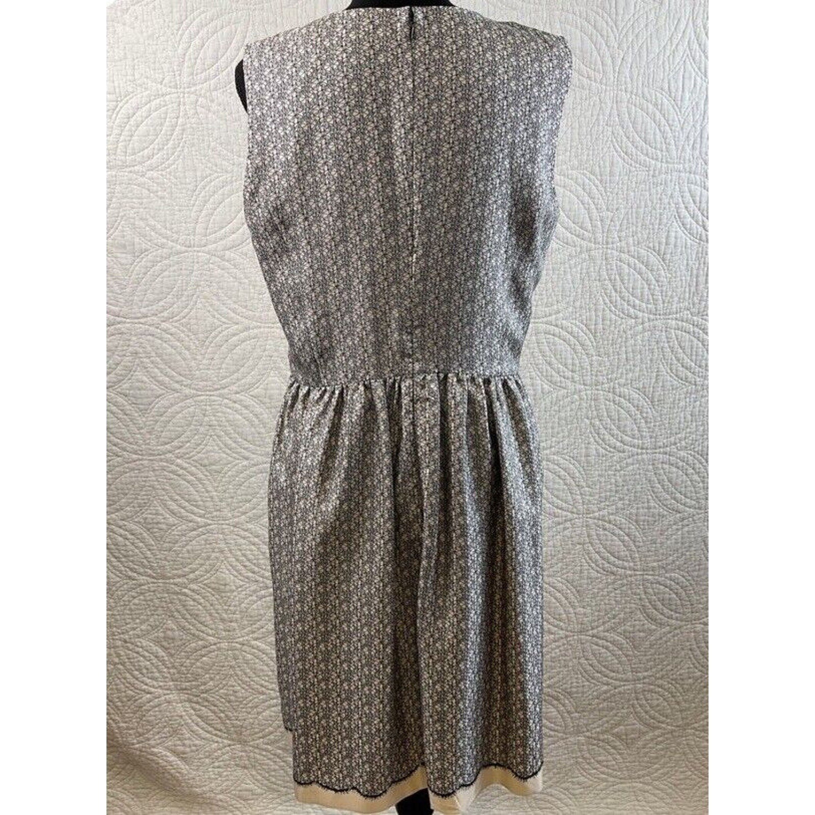 Pre-Owned Women’s Miss Wu Lace Print Silk Twill Dress, Cream & Black color, Sz 10