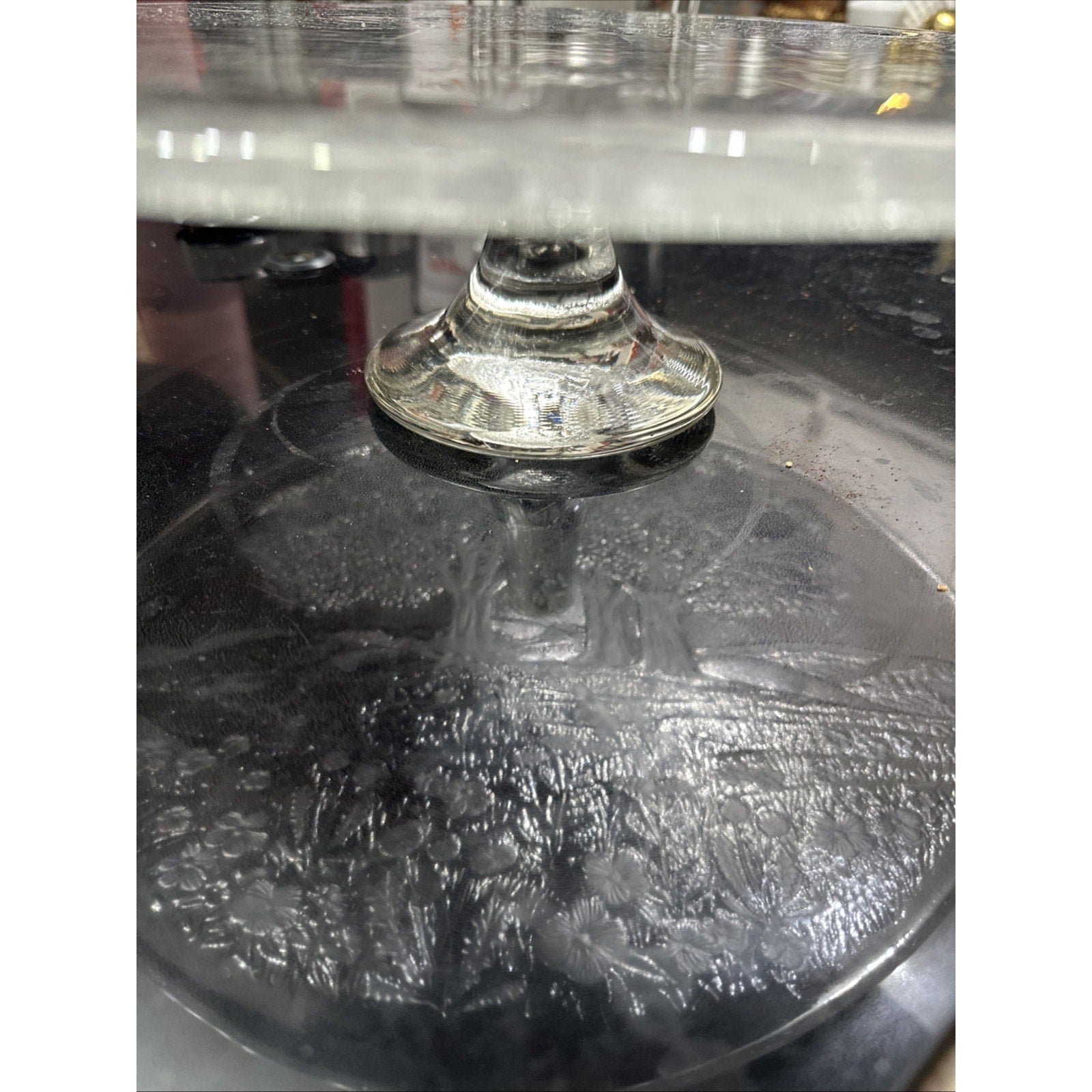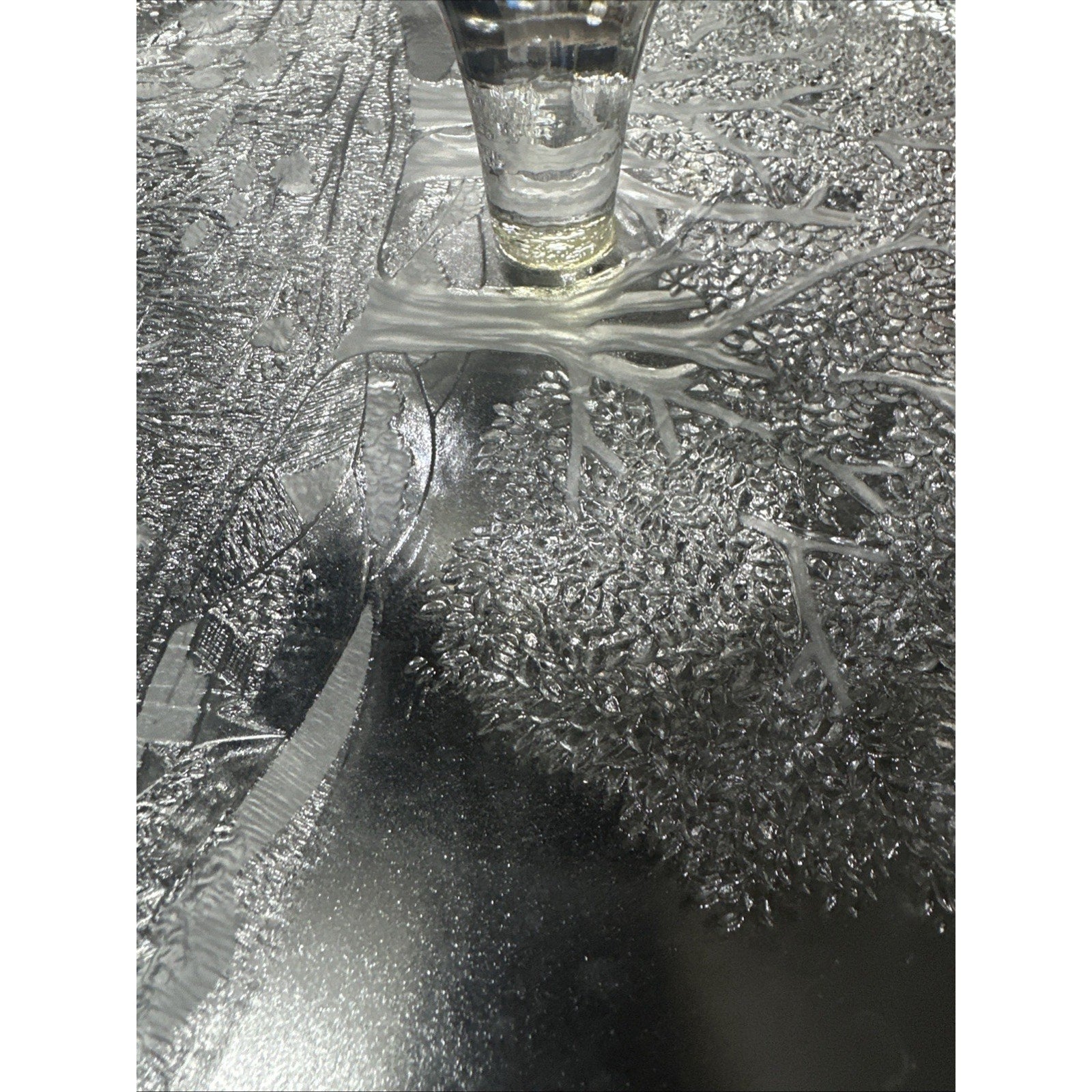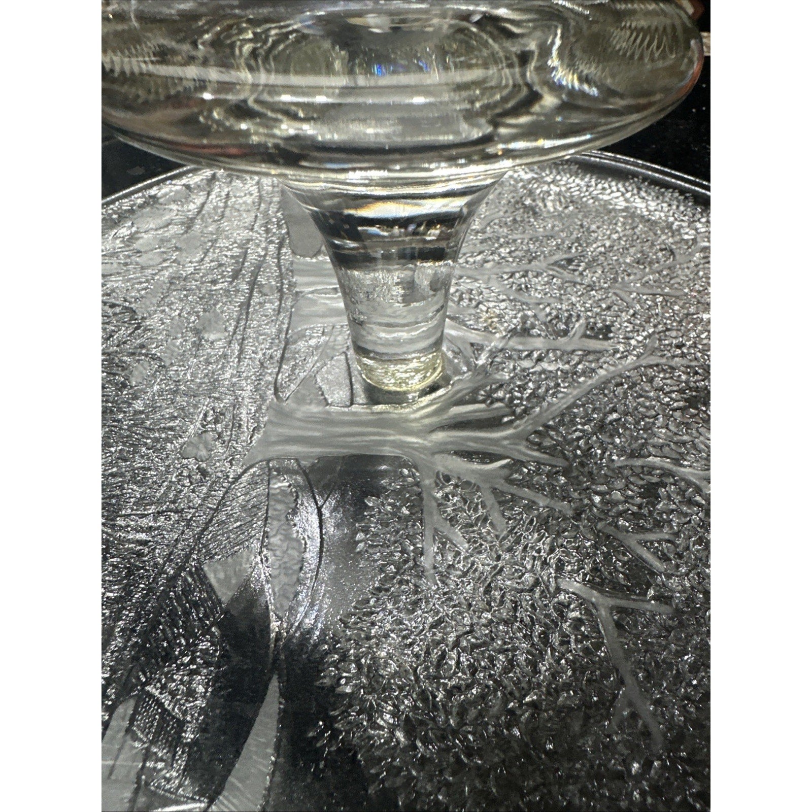 The Retro Vintage Studio Nova Germany Crystal Sun Valley 13” Round Canape Tray plate is a stunning piece of pressed glass from Germany, featuring a clear crystal design with a retro style. The tray plate showcases a beautiful tree landscape theme, making it a unique and charming addition to any home decor. Crafted by Studio Nova, this vintage original piece is perfect for serving or displaying in a stylish and elegant manner.
