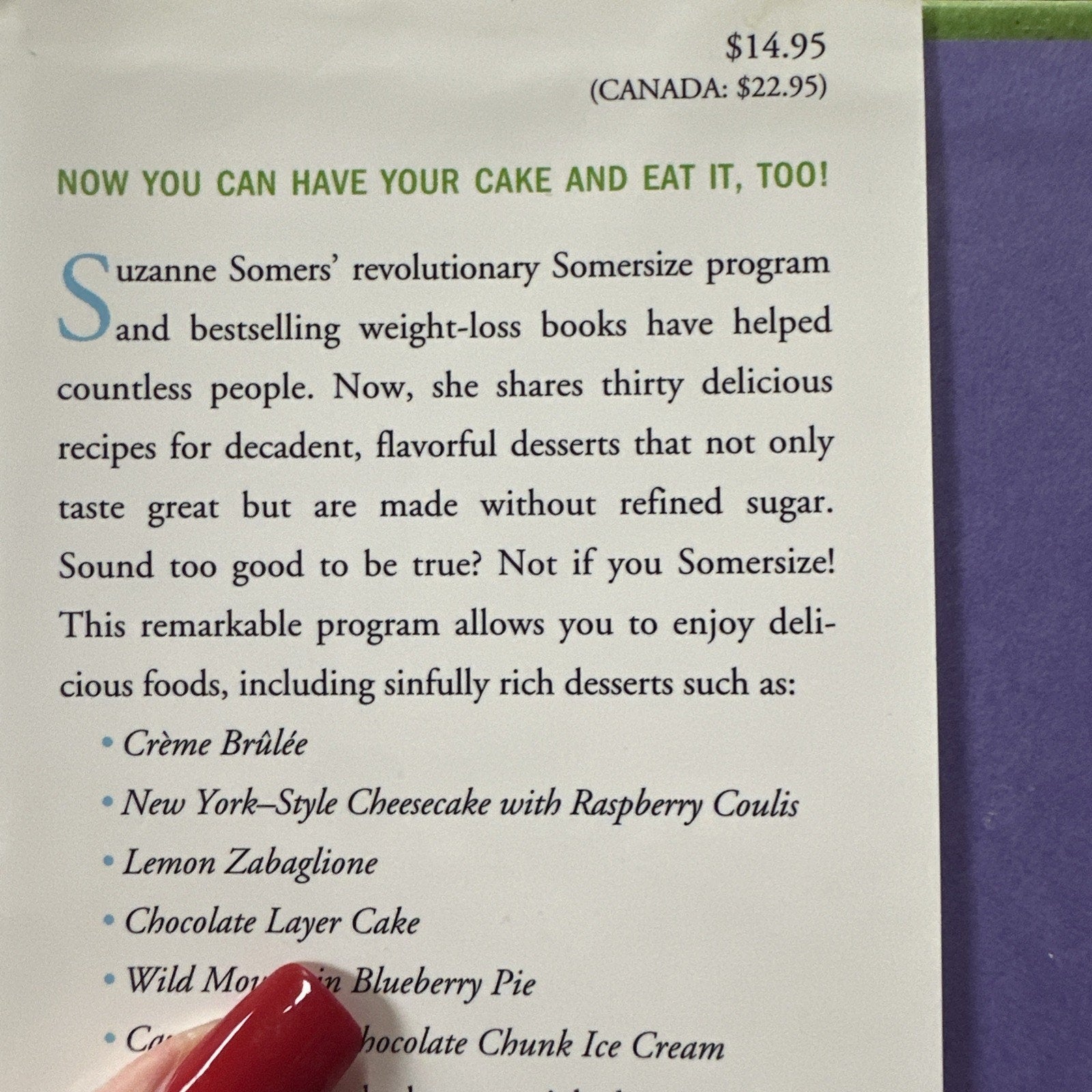 Indulge in the sweetness of healthy living with Suzanne Somers' "Somersize Desserts." This hardcover book, published in 2001 by Crown Publishing Group, T.H.E., is a must-have for anyone interested in health and weight control. The book contains 80 pages of delicious and diabetic-friendly dessert recipes that will satisfy your cravings without compromising your health.