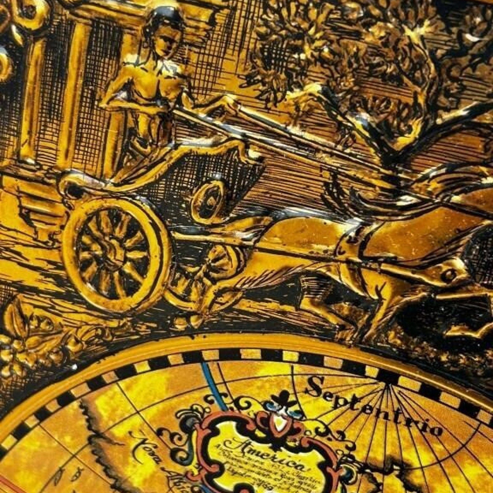 Vintage framed Spartus world map wall clock 16x19.5