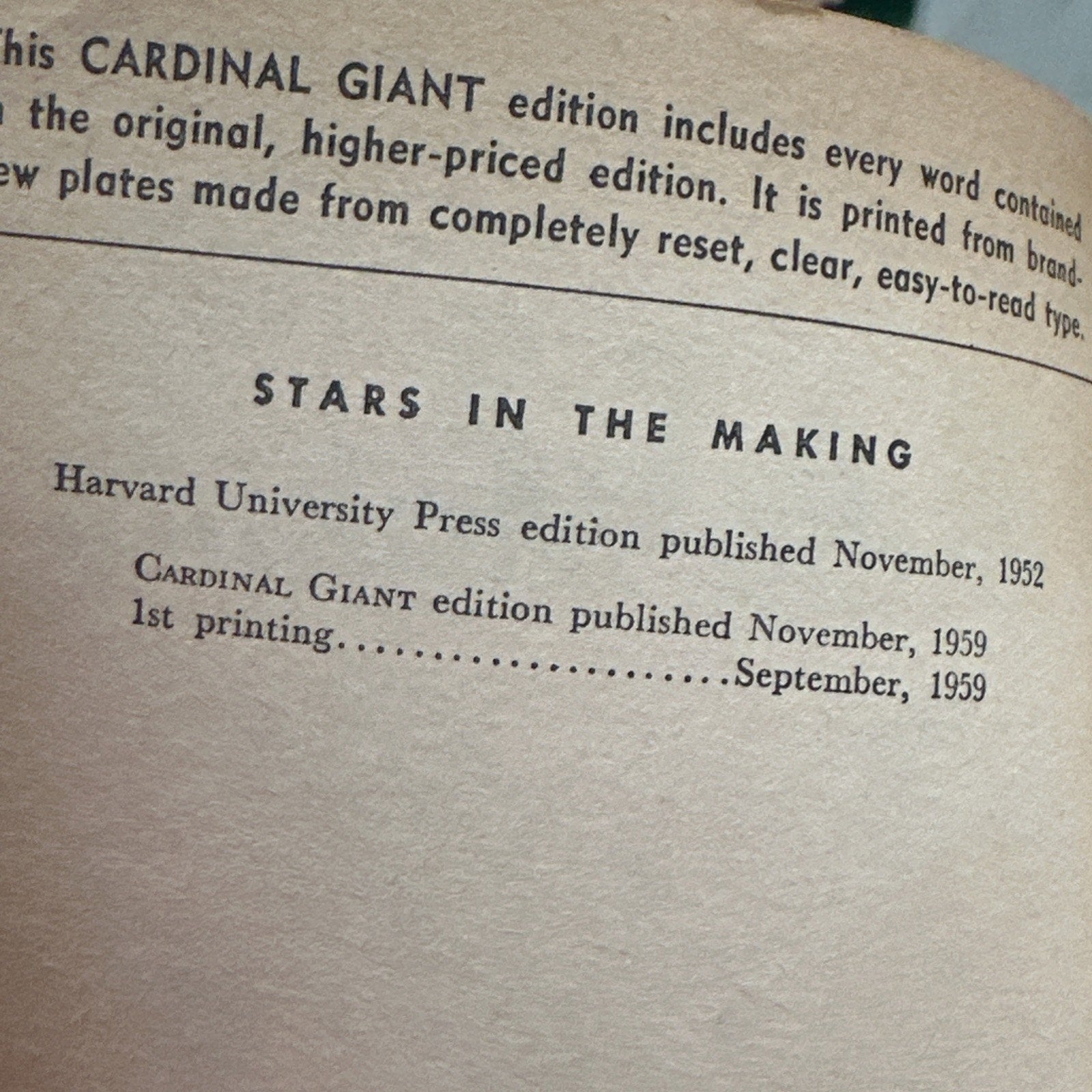 Delve into the cosmos with "Stars in the Making" by Cecilia Payne-Gaposchkin, a compelling exploration of astronomy published in 1959 by Pocket Books. This paperback gem, intended for an adult audience, offers a rich narrative in English, untouched by inscriptions or personalization, focusing solely on the wonders of the celestial bodies above.