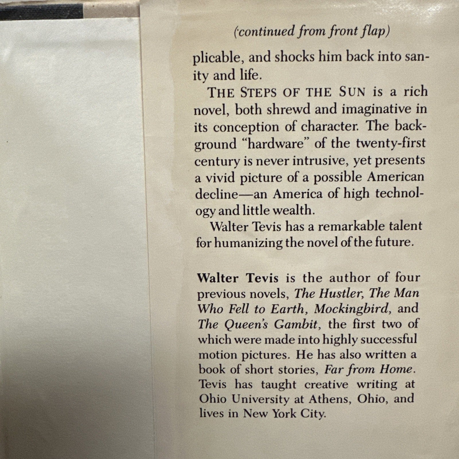 This book, titled "Steps of the Sun" and written by Walter Tevis, is a hardback edition published by Ultra Marine Publishing Company, Incorporated. It has 251 pages and is written in English. The book belongs to the fiction genre and covers a general topic. The author, Walter Tevis, is the artist of this book.