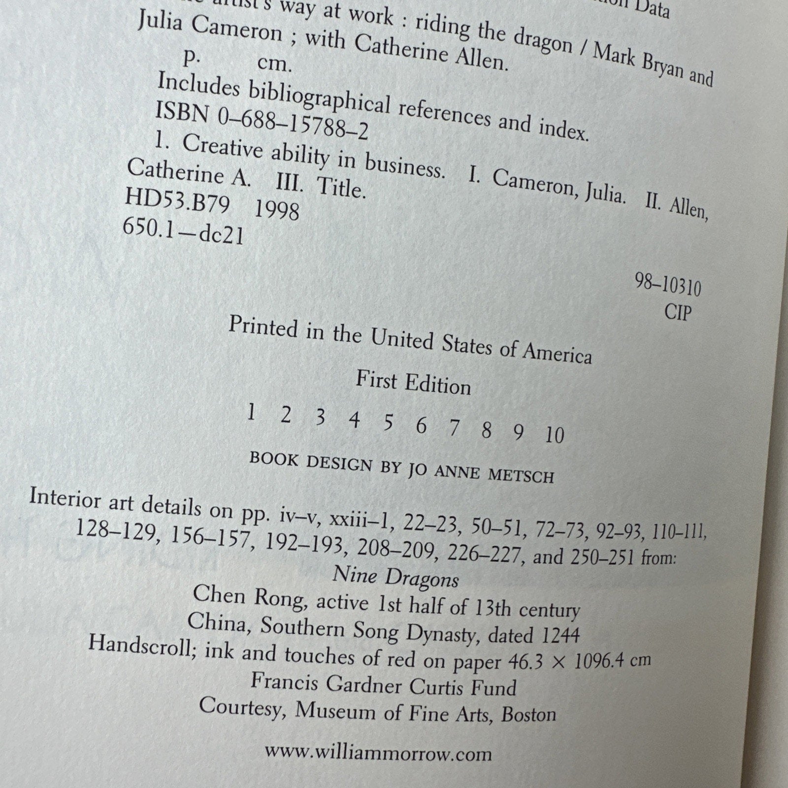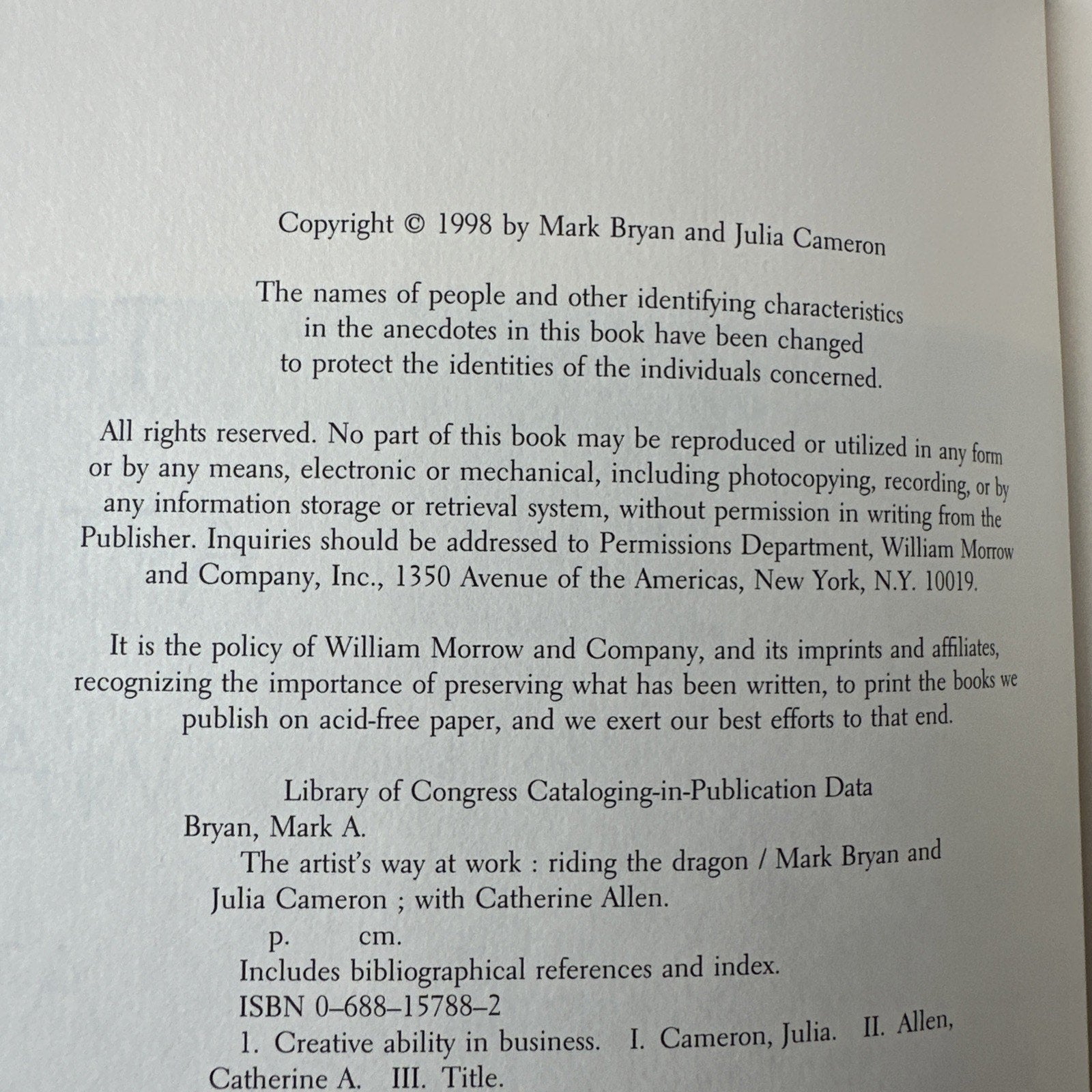 Get the most out of your creative potential with "The Artist's Way at Work: Riding the Dragon". This hardcover book, published by HarperCollins in 1998, is packed with valuable insights on personal growth, creative ability, and mentoring & coaching. The book's authors, Catherine A. Allen, Julia Cameron, and Mark Bryan, provide valuable tips and techniques to help you unlock your full creative potential.