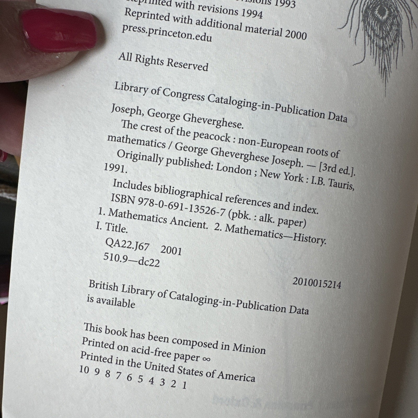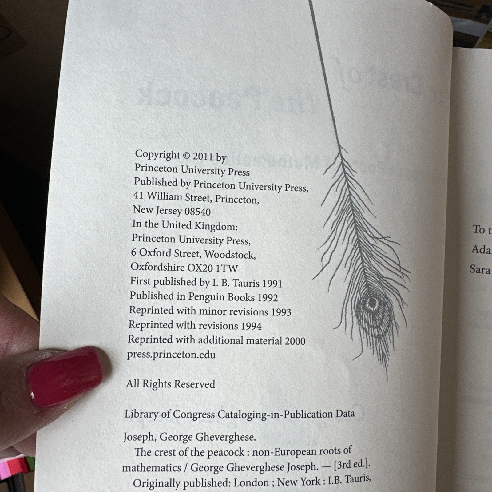 This book, titled "The Crest of the Peacock" and written by George Joseph, is a must-read for anyone interested in philosophy and religion. Published by Princeton University Press in 2010, this 3rd edition book is a great addition to any book collection.