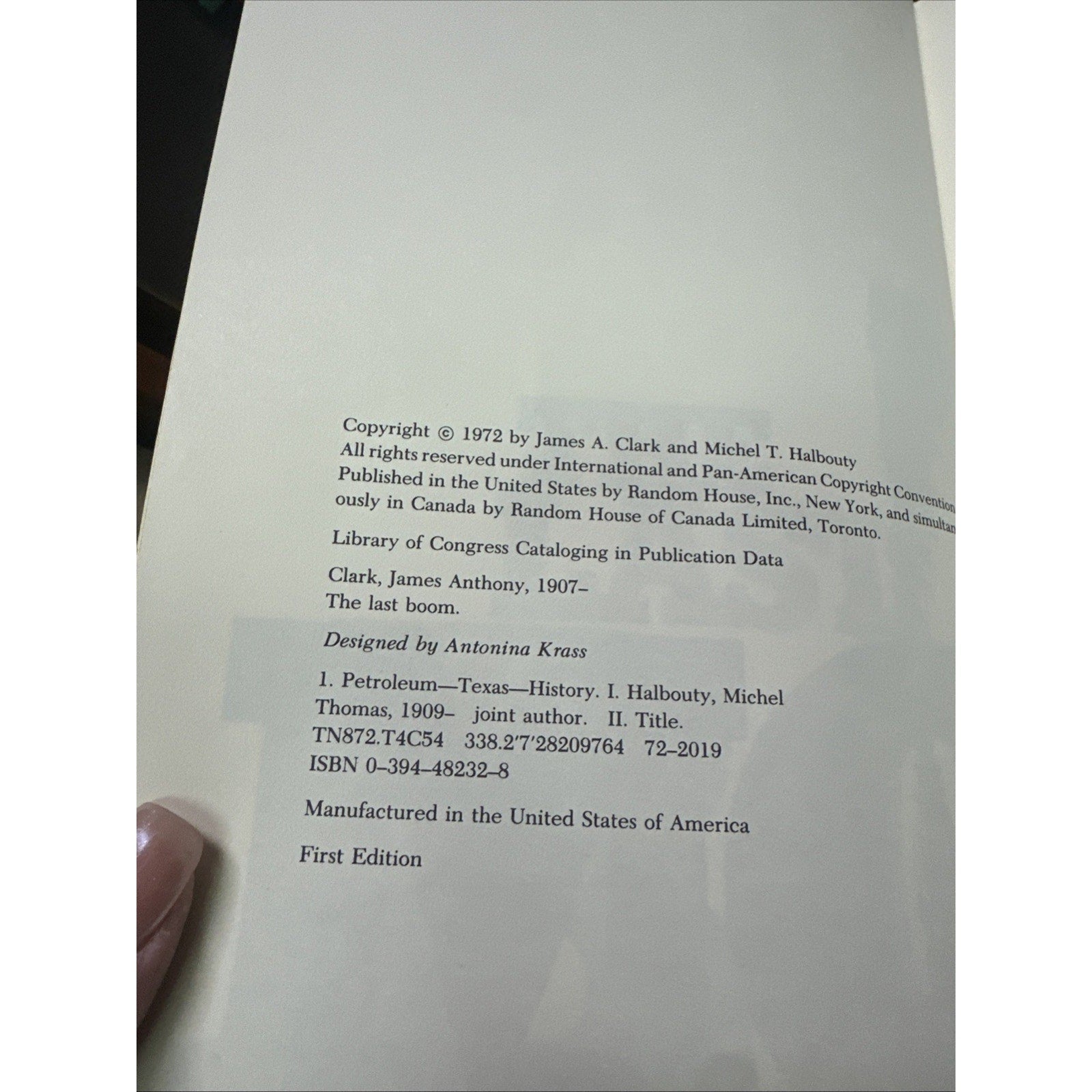 "The Last Boom" by Arthur A. Clark & Michel T. Halbouty is a first edition hardcover book published by Random House in 1972. This book, focused on history, is personalized and comes with a dust jacket. Written by James A. Clarke & Michel T. Halbouty, it is an original printing and part of the Roughnecks character family. This collectible piece offers a glimpse into the past and would be a valuable addition to any book collection, especially for those interested in history and energy exploration.