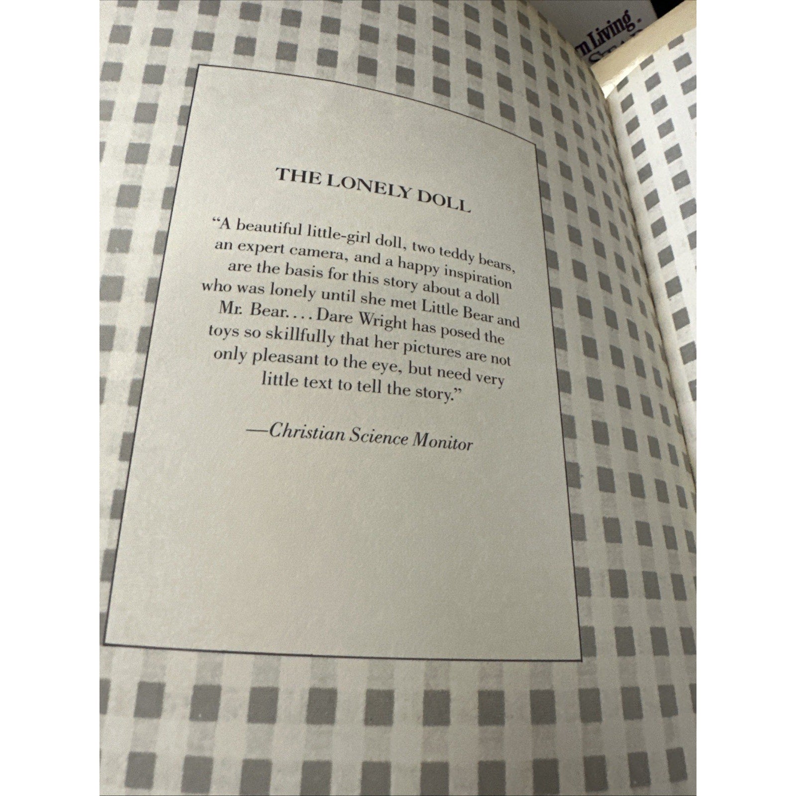 "The Lonely Doll" by Dare Wright, originally published in 1957 by Doubleday & Company. It is a first edition illustrated book, with large print, centered around the theme of dolls. The story features a character named Edith and is written in English. This collectors' item from the 1950s would appeal to those interested in dolls, bears, and vintage children's literature.