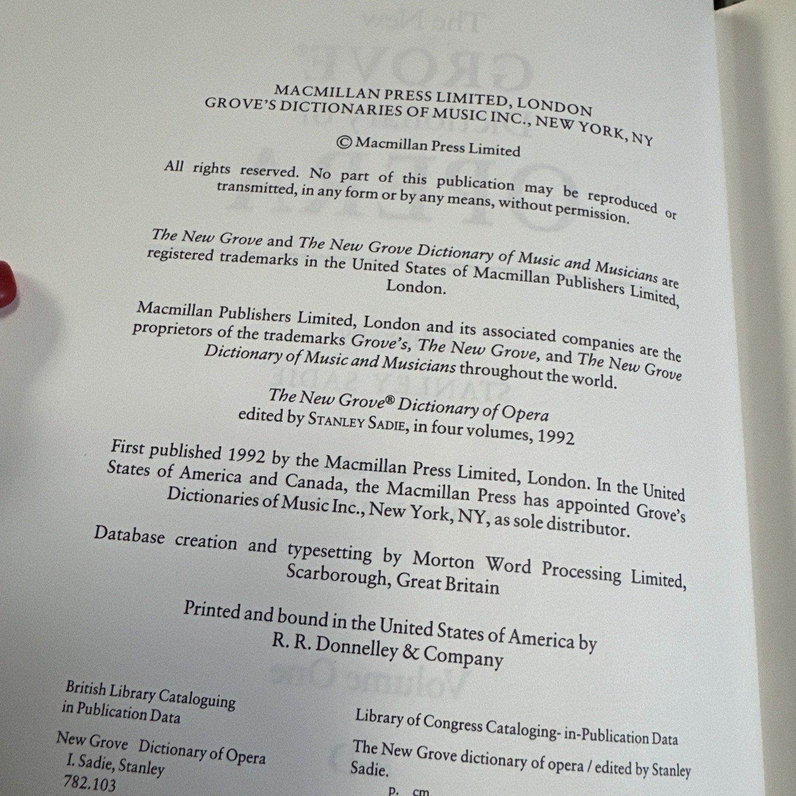The New Grove Dictionary Of Opera By Sadie, Stanley. 4 Volume Set