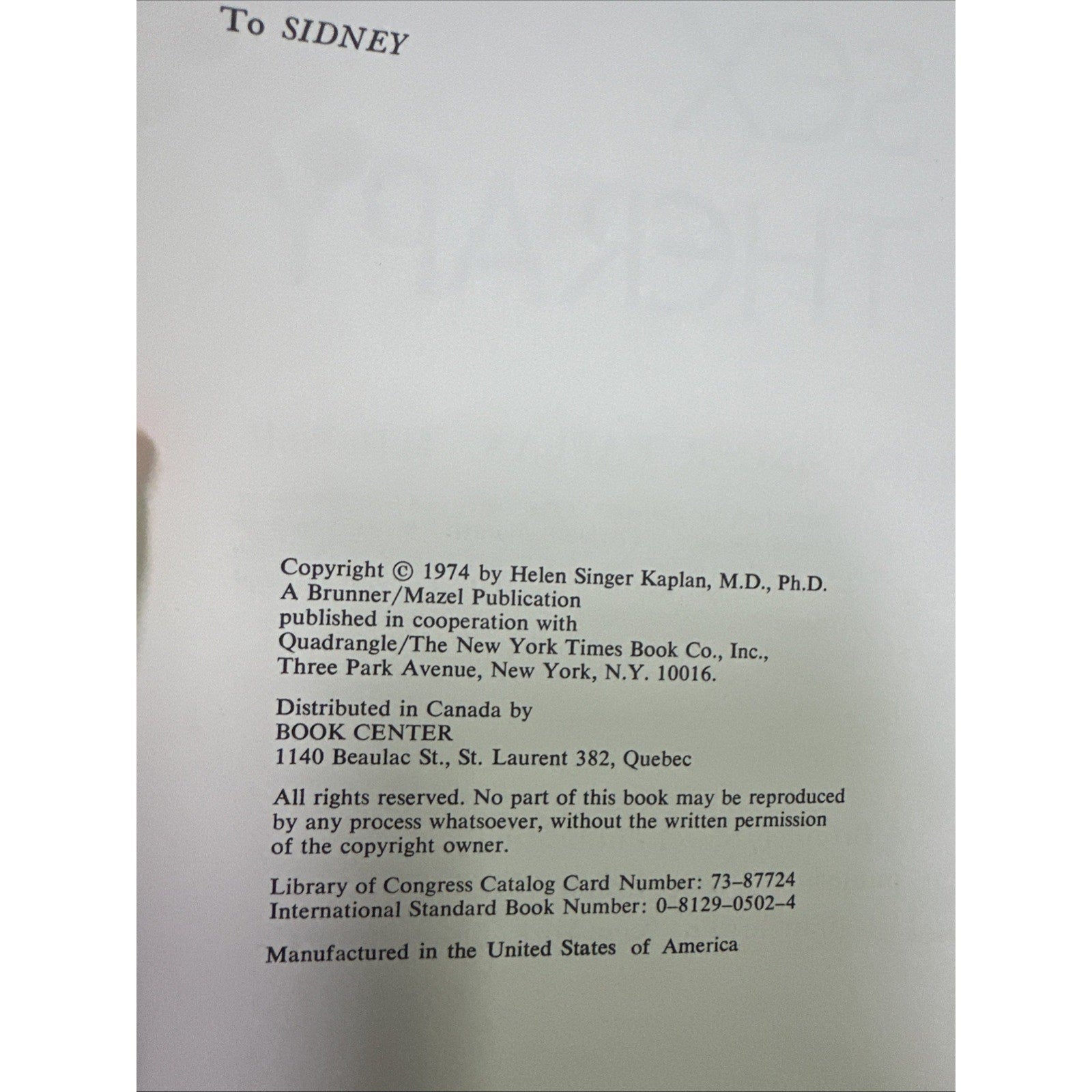 The New Sex Therapy by Helen Kaplan 1974 Hardcover